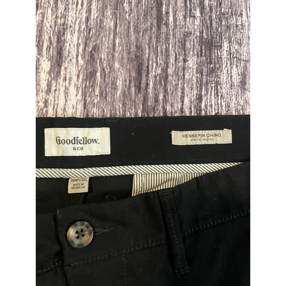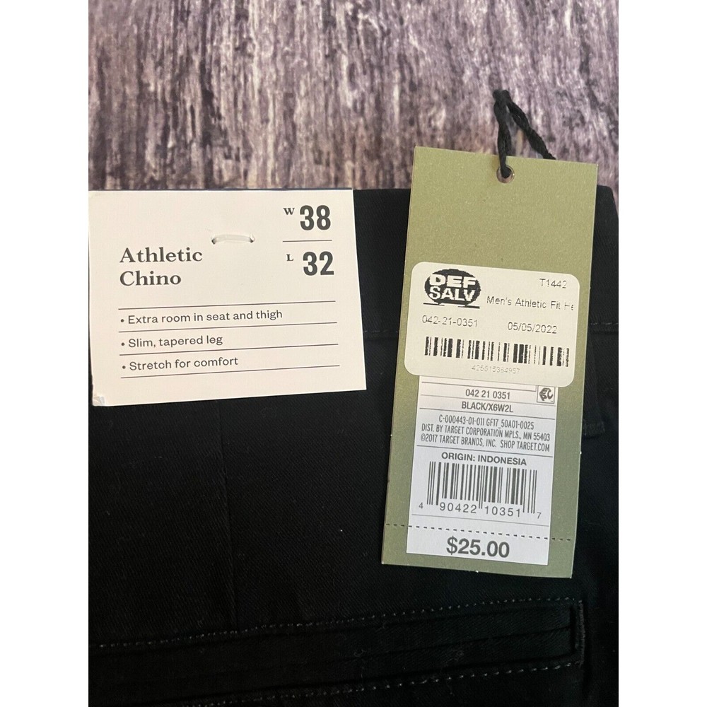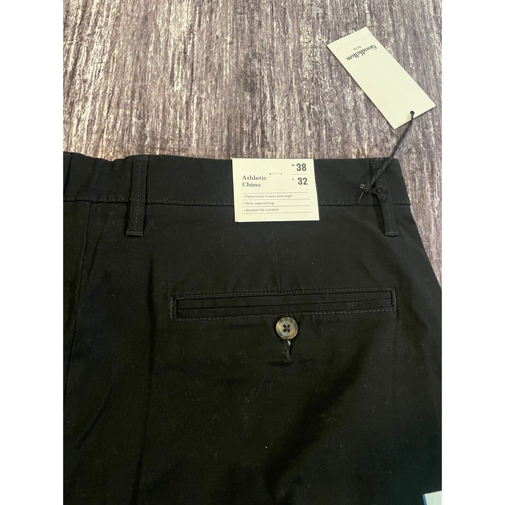 Goodfellow & Co Mens Chino Athletic Fit Henn Denim Jeans Black Size 38WX32L Condition: New with tags Extra room in seat and thigh Slim, tapered leg Stretch for comfort Machine Washable Style Code: 0421-21-0351 Made in Indonesia 38x32