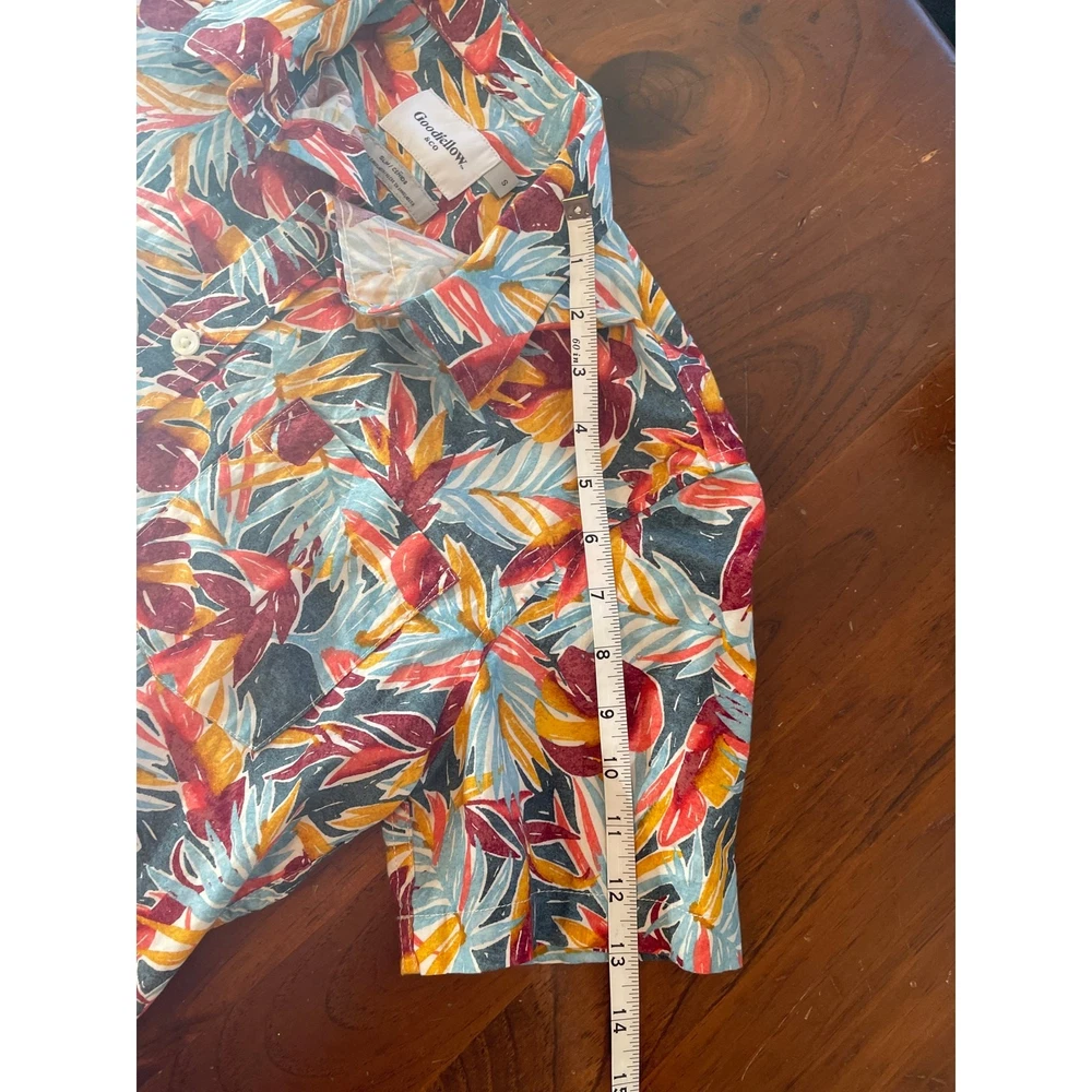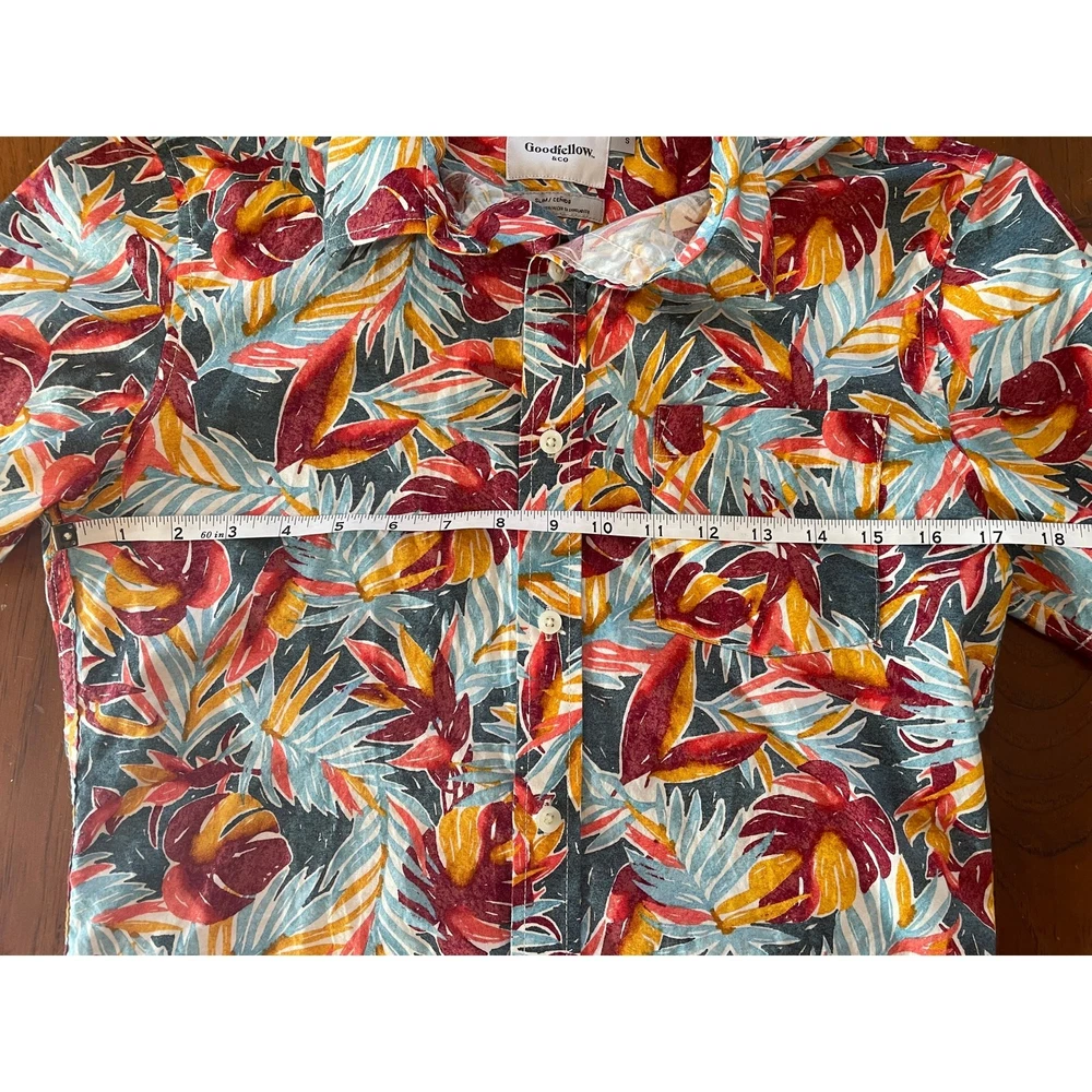 Goodfellow & Co Small Mens Button Up Shirt All Cotton Slim Fit Short Sleeve Polo Photos are part of description Photos are part of description, please see measurements Condition: Excellent (Pre-Owned) Brand: Goodfellow & Co Gender: Men's Category: Polo Size: Small Color: Blue, red, orange, yellow Goodfellow & Co Small Mens Button Up Shirt All Cotton Slim Fit Short Sleeve Polo
