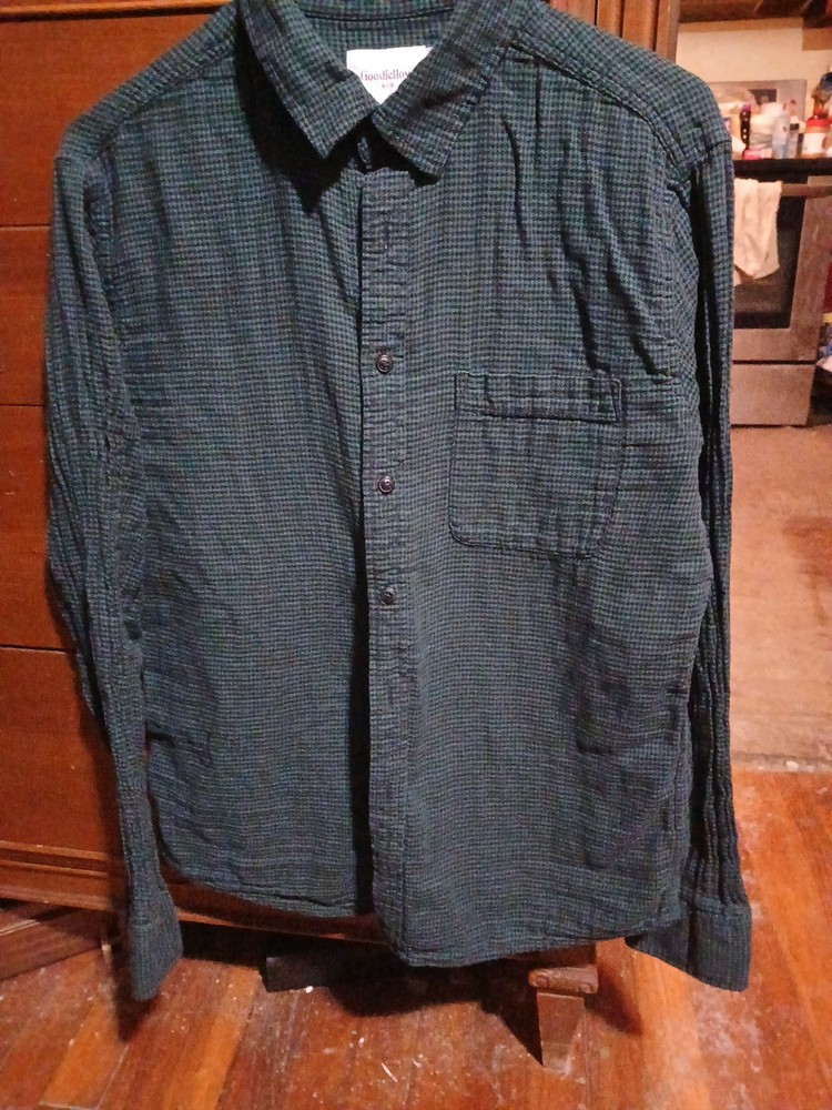 Crafted for the modern man who appreciates a classic touch, this Goodfellow & Co. plaid button-up shirt is a versatile addition to any wardrobe. The shirt comes in a medium size with a tailored fit that's just right for casual outings or travel adventures. It features a sharp collared neckline with a point collar style that adds a hint of sophistication to your look. The shirt's flannel fabric type ensures comfort and warmth across all seasons, making it an essential piece that you can reach for year-round. Its lightweight construction, combined with practical features like easy machine washability and convenient pockets, makes it an effortlessly stylish choice for any occasion. Whether you're out on a chilly fall day or enjoying a summer evening, this shirt's timeless design and durable cotton blend material will keep you looking sharp and feeling comfortable.