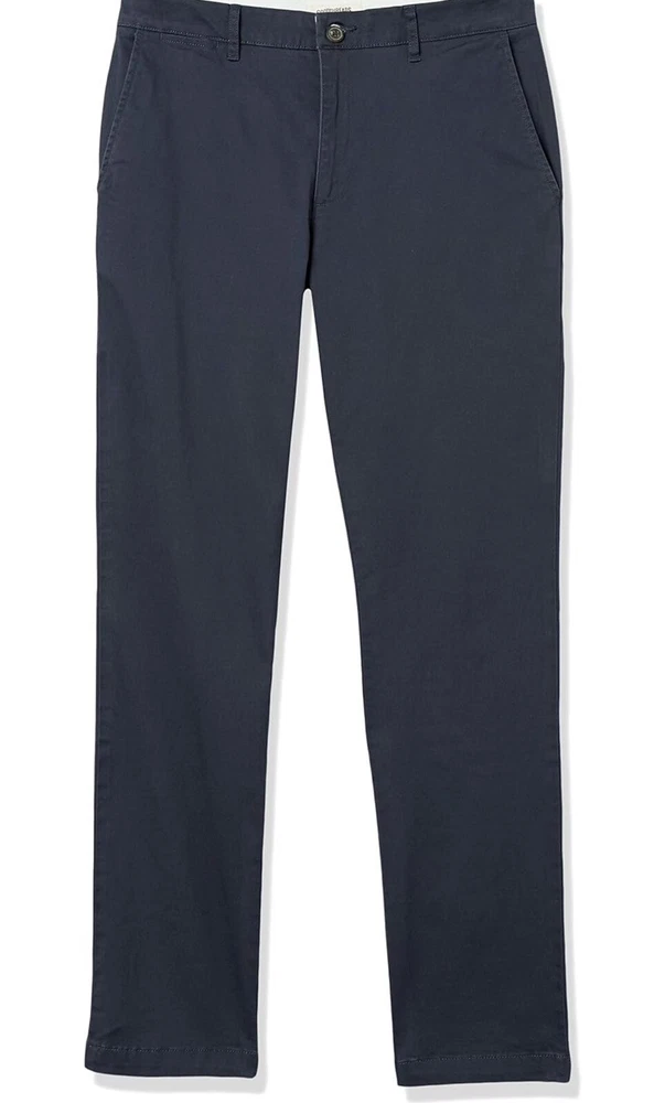 Elevate your wardrobe with these stylish and functional chino pants from Goodthreads. The navy color and solid pattern make them a versatile addition to any outfit, while the slim-fit and flat front design give them a modern, city-preppy vibe. These pants feature a zip and button closure, as well as slash pockets for added convenience. The fabric type is canvas, consisting of 97% cotton and 3% elastane, which provides both comfort and stretch. They are perfect for the transitional seasons of summer, fall, and spring, and can be dressed up or down for casual or workwear occasions.