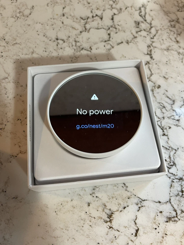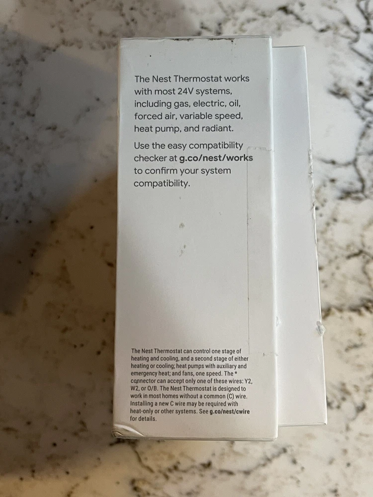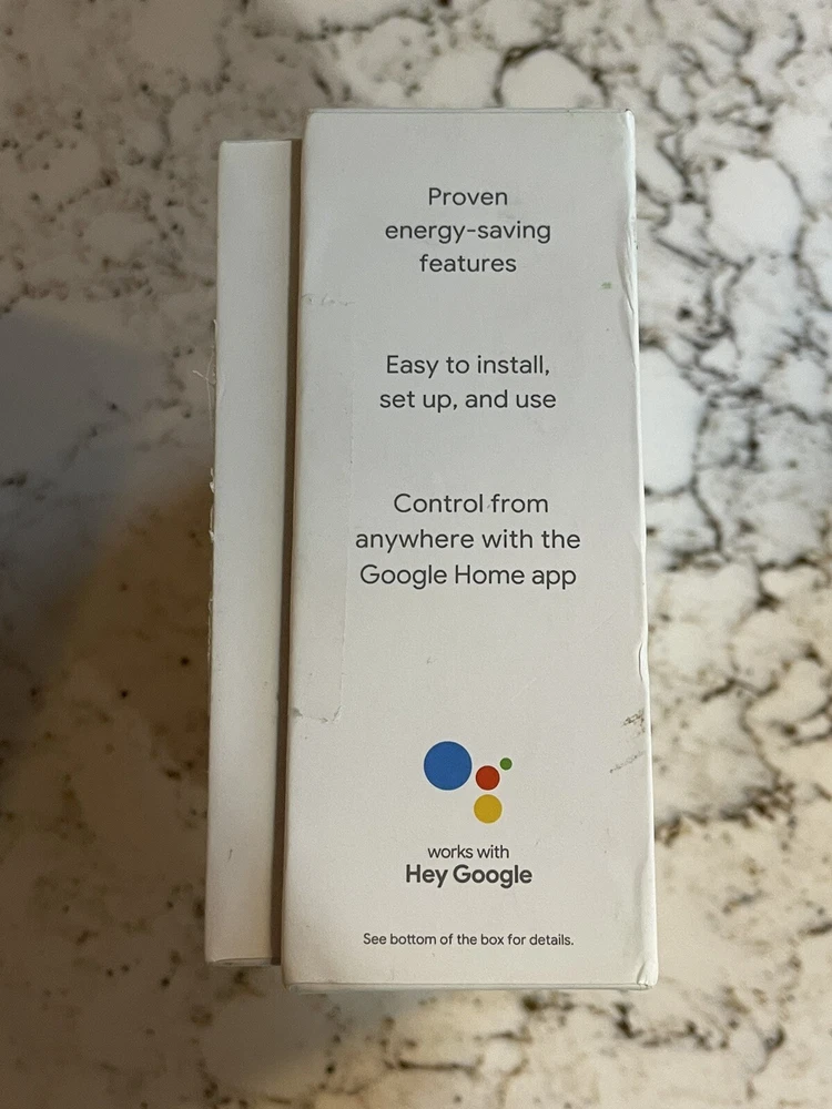 Enhance your home's heating, cooling, and air system with the Google Nest G4CVZ Smart Thermostat in Snow (GA01334-US). This programmable unit comes with all necessary accessories and features Bluetooth and Wi-Fi connectivity, as well as app control for easy temperature, humidity, and ambient light monitoring. With a sleek round shape and white plastic material, this Google Nest Thermostat is a stylish addition to any home decor. It is compatible with Google Home/Assistant and Amazon Alexa, making it easy to control your home's climate system with voice commands. The 2.4-inch (6.1 cm) display size provides clear visibility into the temperature data, while the AAA battery size ensures long-lasting performance.