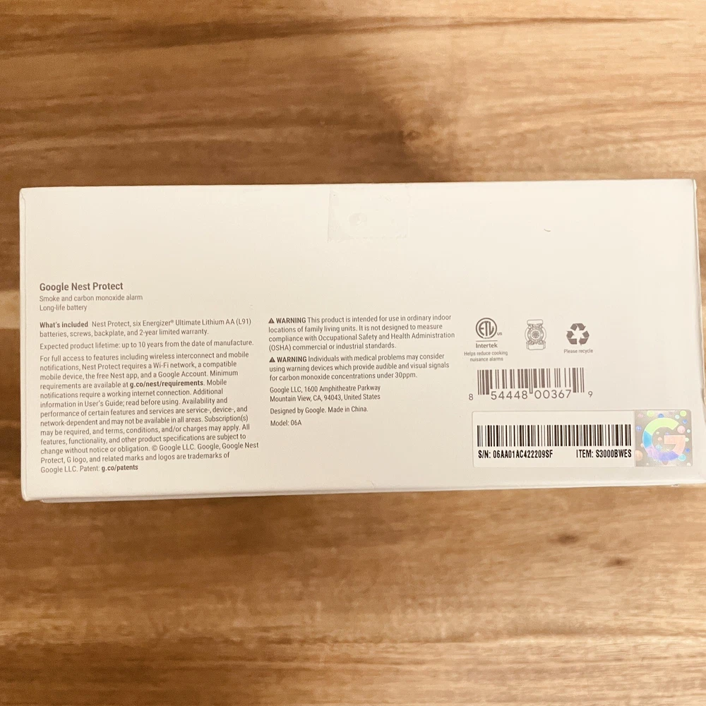 Google Nest Protect Long Life Battery Smoke and Carbon Monoxide Detector, NIB