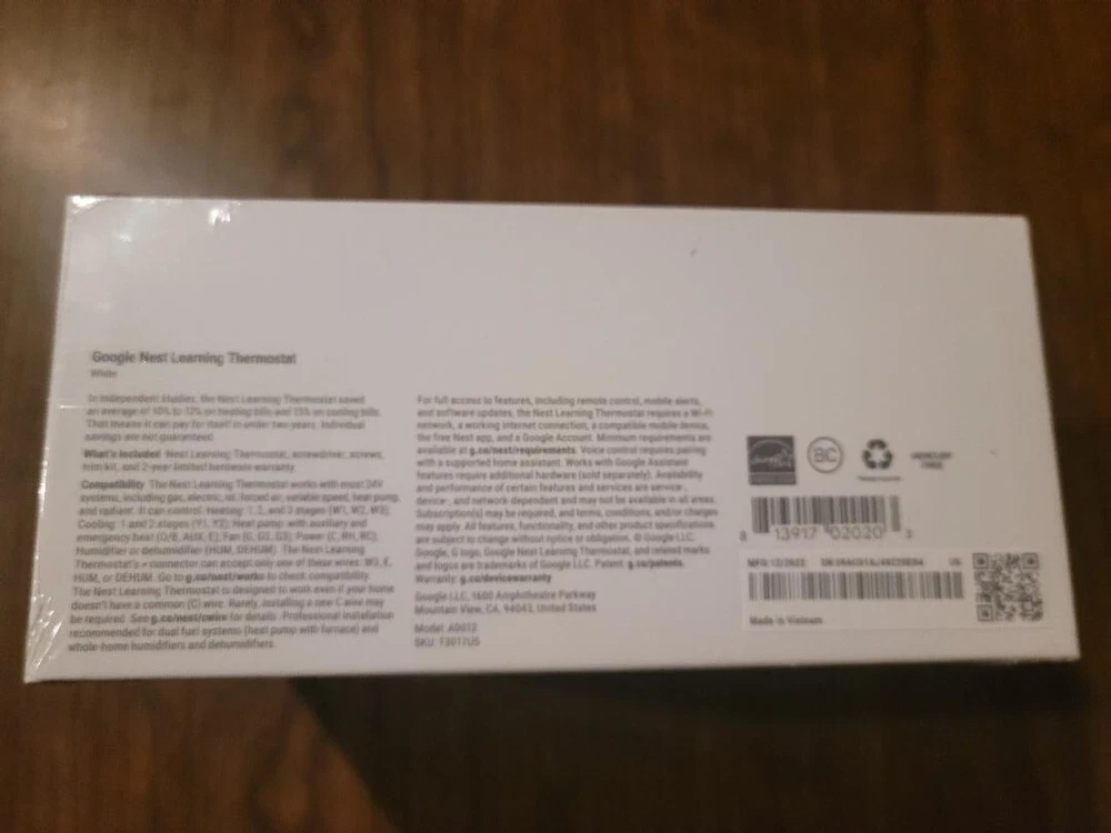 The Google Nest T3017US Learning Thermostat 3rd Gen in White is a smart home device that lets you control the temperature of your home remotely. With its programmable feature, you can easily adjust the temperature settings according to your preference. This device comes with a rotary knob, Wi-Fi, app control, and digital display, making it easy to use and manage.It is compatible with other Google Nest devices and can be controlled through the Nest app. The device is sealed and comes in its original box, making it a perfect gift for anyone who loves smart home technology. Get your hands on this programmable thermostat today and experience the convenience of remote temperature control.