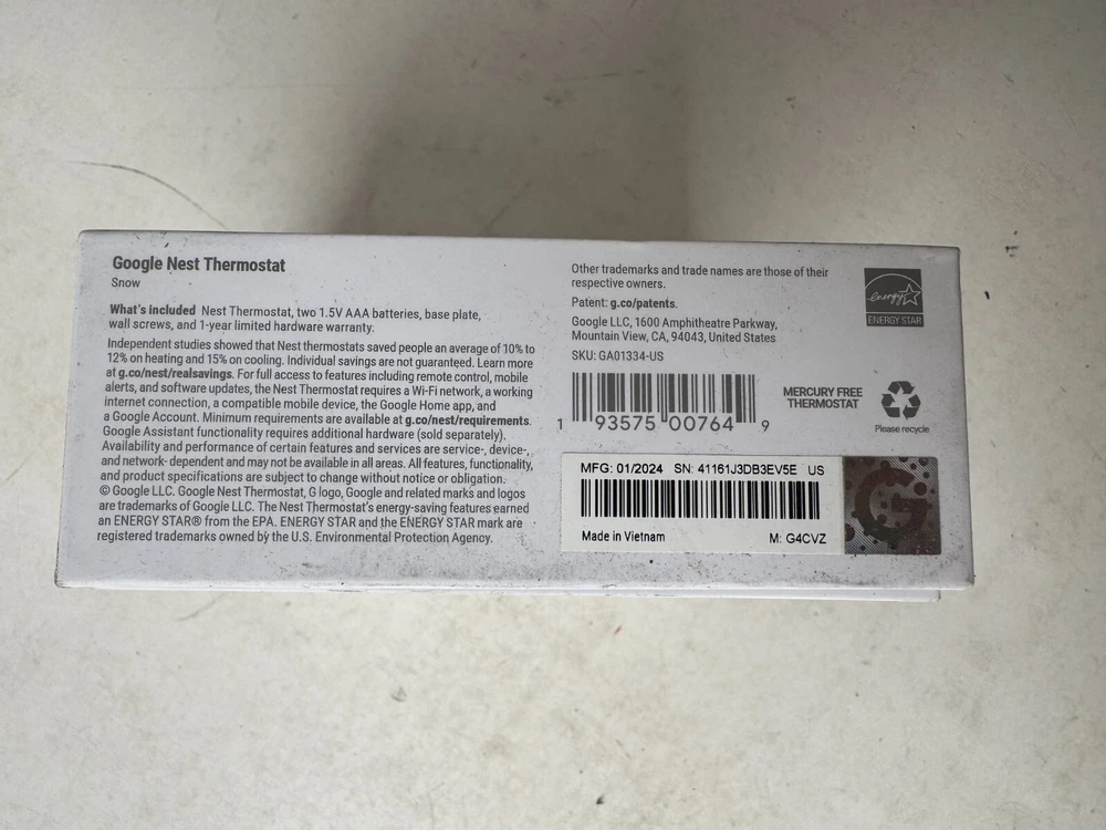 Google Nest Thermostat Programmable Smart Thermostat for Home Snow - White Description Google Nest Thermostat Programmable Smart Thermostat for Home Snow - White. Product Detail Brand : Google Nest Model : Nest Thermostat Color : White Type : Smart Thermostat Please message me if you have any questions.