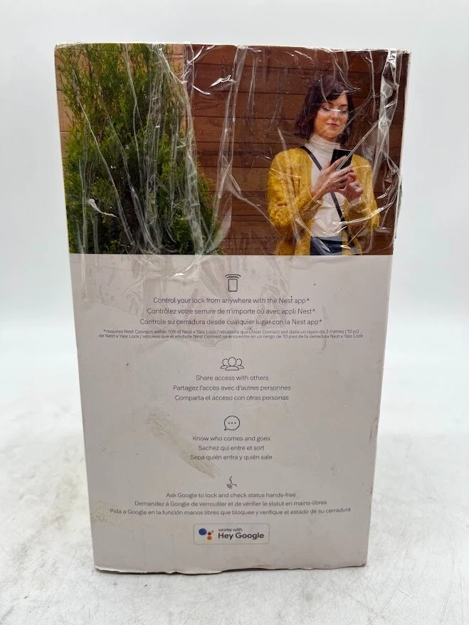 The item is new, unused. Listed as open box due to the fact there is some packaging distress. Upgrade your home security with the Nest x Yale Lock , a tamper-proof smart lock designed for modern living. Say goodbye to traditional keys and enjoy the convenience of locking and unlocking your door from anywhere using the Nest App. With customizable passcodes, remote access, and seamless integration with Google Assistant, this lock combines cutting-edge technology with sleek design to provide a smarter way to protect your home. Key Features Secure and Tamper-Proof Advanced Security : Replaces your existing deadbolt with a tamper-proof smart lock. Privacy Mode : Disables the keypad for undisturbed moments. Convenient Access Options Keyless Entry : Use the LED keypad to unlock the door without a key. One-Touch Locking : Quickly lock your door with a simple tap. Custom Passcodes : Share unique codes with family and guests, with scheduling options for added control. Remote Control and Alerts Nest App Integration : Lock and unlock the door, check its status, and get alerts on your phone. Mobile Alerts : Notifications for locking, unlocking, and tampering attempts. Smart Home Compatibility Google Assistant Enabled : Control your lock hands-free with voice commands. Auto-Lock Feature Set and Forget : Automatically locks when you’re away for added peace of mind. Durable and Stylish Metal Finishes : Available in Satin Nickel, Oil Rubbed Bronze, and Black Suede to match your home’s aesthetic. Standard Door Compatibility : Designed for easy installation on most standard doors. What’s in the Box? Nest x Yale Smart Lock Installation hardware Quick start guide We take great care to inspect all items and ensure they are accurately described. Should you have any issues with your purchase, please let us know immediately. We are committed to resolving any concerns promptly and to your satisfaction. Our small business truly appreciates your patronage.