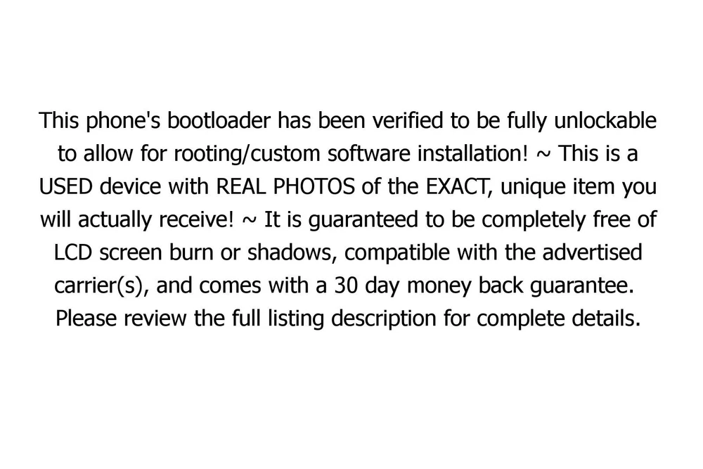 WebPage Google Pixel 7 Pro Unlocked AT&T T-Mobile Verizon Unlockable Bootloader 7604006 This item is in EXCELLENT cosmetic condition. PLEASE SEE RATING SCALE BELOW BUT MORE IMPORTANTLY REVIEW THE PRODUCT PHOTOS! Condition Description Excellent Lightly Used - Minimal signs of wear Good Normal wear - Minor scratches or scuffs Acceptable Fairly worn - Scratches, scuffs, nicks and dents Poor Heavy wear - Major scratches, scuffs, nicks, and dents IMPORTANT: All items are fully functional unless advertised otherwise. Please review the entire listing before purchase. The following items are included with your purchase: USB Sync/Charging Cable Generic Retail Box 30 Day Warranty Free Shipping *PLEASE NOTE: A wall charger adapter is NOT included, but you can purchase one here: WALL CHARGER LISTING UNLOCK STATUS: This item is FACTORY UNLOCKED and compatible with many carriers worldwide. In some cases, it may be necessary to adjust your network settings before the device will operate with your carrier. Please contact your carrier with the model number referenced in this listing to ensure compatibility. IMPORTANT NOTES: This phone's bootloader has been verified to be fully unlockable to allow for rooting/custom software installation! ~ This is a USED device with REAL PHOTOS of the EXACT, unique item you will actually receive! ~ It is guaranteed to be completely free of LCD screen burn or shadows, compatible with the advertised carrier(s), and comes with a 30 day money back guarantee. Please review the full listing description for complete details. Generic Description: Domestic Shipping General Information: Once we receive your payment, your item will be shipped for FREE within one business day via USPS First Class Mail. Depending on your location, you may also have the option to upgrade to a faster shipping service. Please see below for information on cost and transit time. Business days do not include weekends or holidays. USPS First Class Mail (Cost = FREE) : Estimated delivery 2-6 business days after purchase depending on your delivery location. This includes one business day for processing and one to six business days for delivery. FedEx 2Day Shipping (Cost = $5.99) : Estimated delivery 2-3 business days after purchase depending on your delivery location. This includes one business day for processing and two business days for delivery. FedEx 1Day Shipping (Cost = $69.99) : GUARANTEED delivery 1 or 2 business days after purchase. This includes one business day for processing and one business day for delivery. International Shipping General Information: We are proud to offer International shipping to many countries through the eBay Global Shipping Program! The item will be shipped to an eBay approved export facility in Erlanger, Kentucky, USA. From there, the item will be exported to your international delivery address. This item includes a 30 day warranty through our online store. If your item is received in a condition other than described, please contact us directly by phone or email for an immediate solution. When purchasing from us, you can rest assured we are 100% committed to satisfying our customers and are proud to stand behind our products with a Full 30-Day Money Back Guarantee. Please do not leave low ratings on our account without contacting us first by phone or email. We proudly accept all payment methods supported by eBay Managed Payments! Payment is due immediately upon purchase. eBay requires that we ship only to the address provided with your payment at the time of checkout. Please make sure the shipping addres you provide to eBay is correct prior to confirming your payment. If you have any questions or concerns before or after receiving your item, please do not hesitate to contact our customer service team by clicking on the button below. Please make sure to reference an eBay item number with your message. E-mails are answered Monday through Saturday in the order they are received. Please allow up to 24 hours for a response to your message. Rest assured all customer inquiries are a high priority and will be responded to in a timely and professional manner. Your satisfaction is guaranteed!