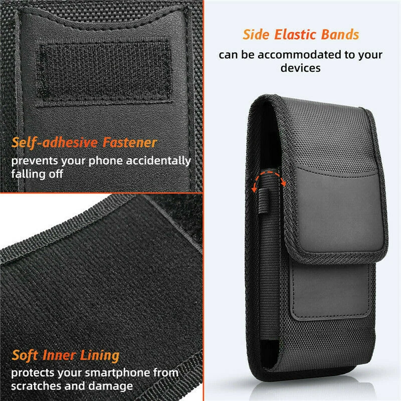 Features: * Brand New Metal Belt Clip , Belt Loop Pouch Nylon Velcro Flap Case * Materials : Canvas Nylon * Canvas exterior with Velcro closing flap; inside lined with cloth. * The interior is lined with black soft neoprene fabric that protects your phone from minor bumps and shock. * Premium leatherette and high-quality construction with black color stitching and sealed seams for durability and classic good looks. * Vents on the back for phones with rear speakers. Magnetic closing flap keeps your phone safely inside the case. * Holster case with belt loop, fixed metal belt clip and carabiner hook; 4 Different Ways to wear: Vertical/ Horizontal/ Clip On/ climbing hook. Elastic-type wide band to hold a pen or stylus on the case Package Included: 1 x Canvas Nylon Pouch Carrying Holster Case & Belt Clip Contact: If you are not satisfied with your purchase, simply contact us via eBay message and your interests will be protected. Please don't open a dispute or leave neutral/negative feedback without communication,I will reply within 12 hours of receiving the message.Thanks.