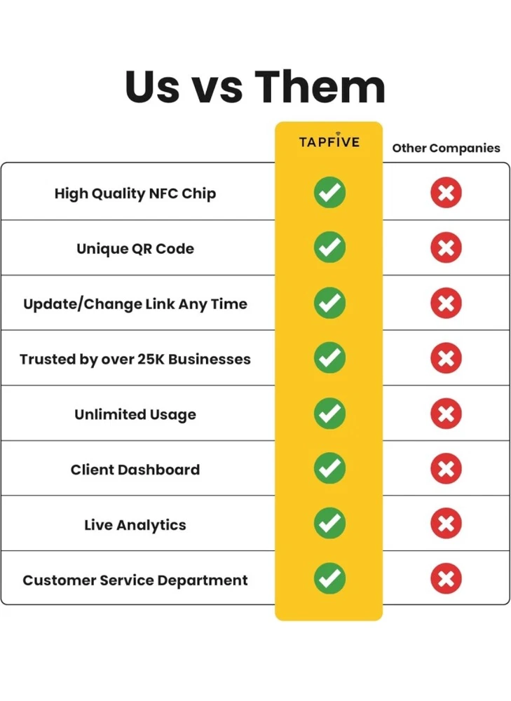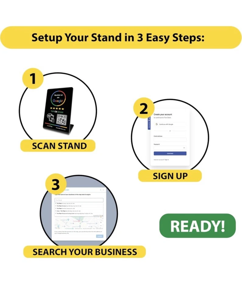 Tap Google Review Stands (3-Pack) by TapFive - Tap for Instant Reviews - All Phones Compatible - Reusable Smart Tap NFC & QR - Boost Business Reviews Zappy Fast - Powered by TapFive (White, 3 Stands) β NO MONTHLY FEES WITH UNLIMITED TAP: Enjoy Free Access! Unlike competitors who charge monthly, TapFive Stars Card monthly access is FREE and NOT a subscription. π GET MORE 5π REVIEWS: Customers can easily access your reviews page by tapping the card and share their positive experience. TapFive Stands are powered by TapSnap technology, a leader in NFC tap tag technology. βΎοΈ UNLIMITED TAP: Includes free unlimited taps and scans! Never worry about your Google review tap stand not working. Unlimited for lifetime! π GET MORE CUSTOMERS: Instant feedback from happy clients means higher SEO and more sales while attract new customers. Our eye-catching stand is perfect for local businesses, stores, restaurants, offices or any type of business looking to improve their online presence. π― EASY SET UP: Setting up our Google Review Tap Stand takes less than 2 minutes. The package includes instructions, and our customer support is always available to help. Manage your Google review stickers through the TapFive platform and modify the link whenever you want. No extra subsciption fees, ever. π LIVE STATISTICS: See live statistics of how many visits and reviews you've received through your TapFive Stand.