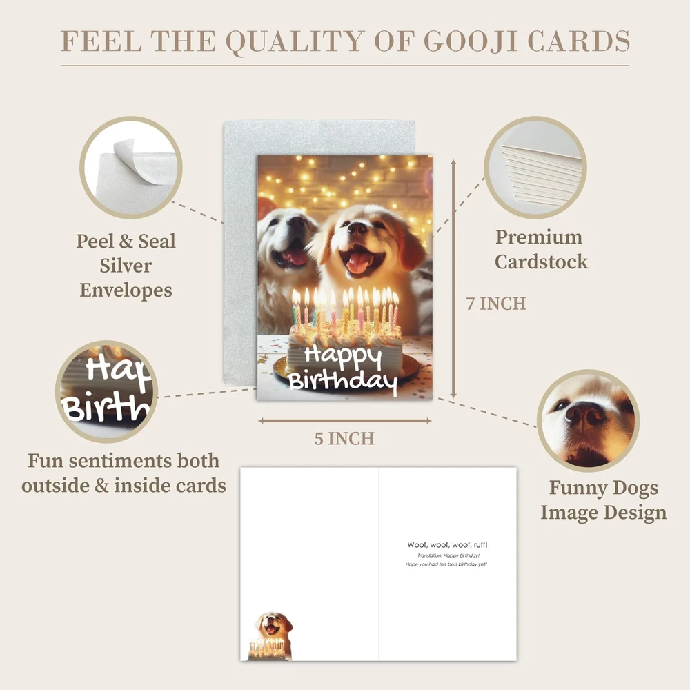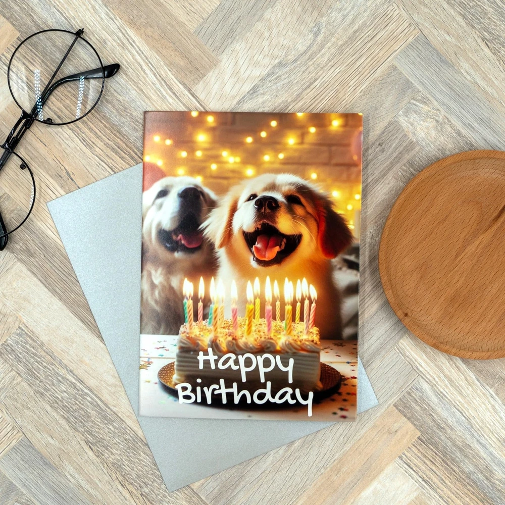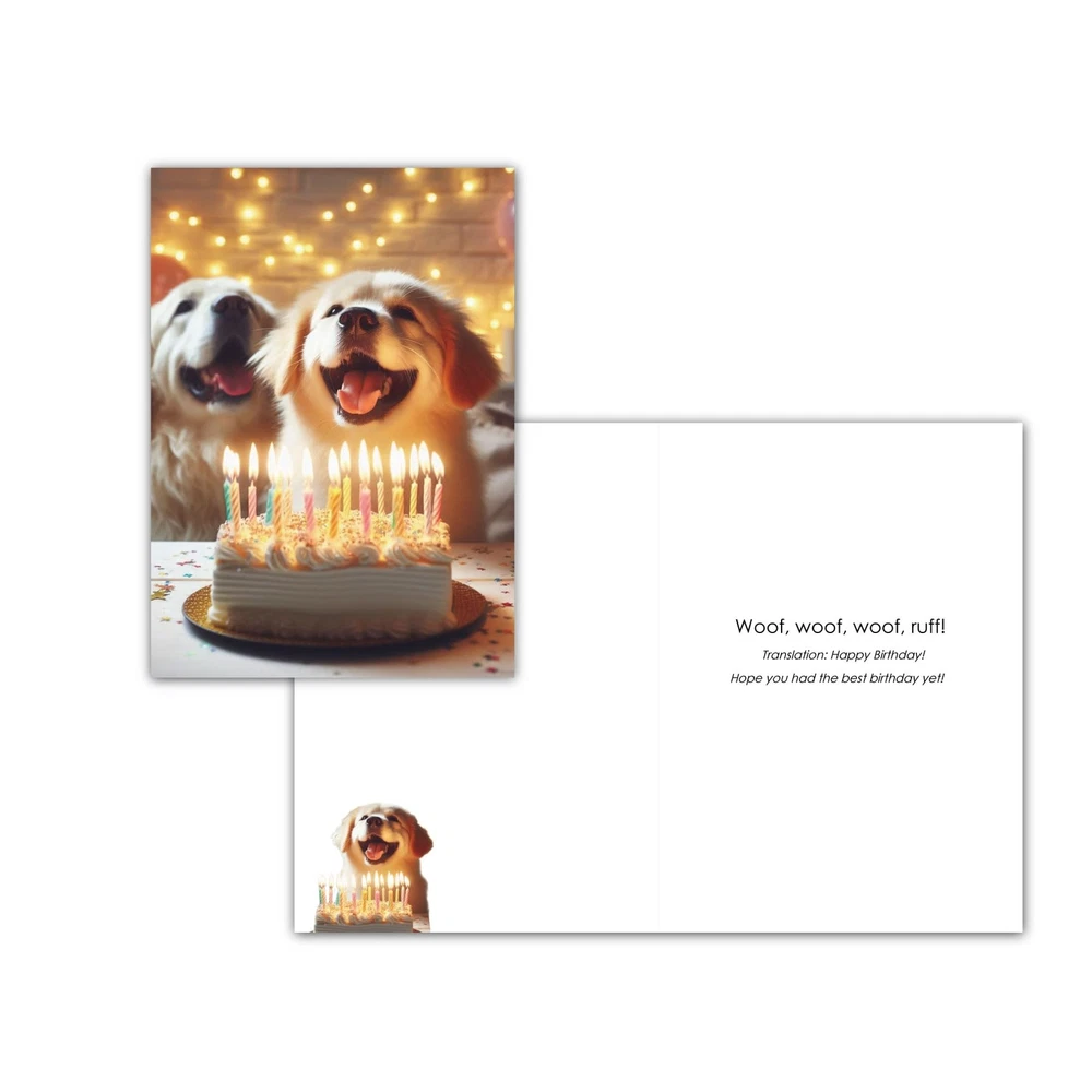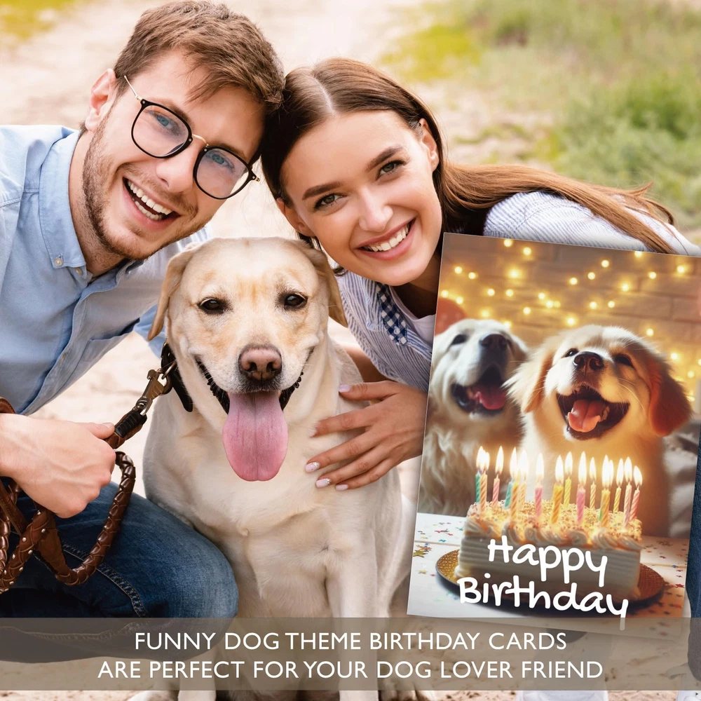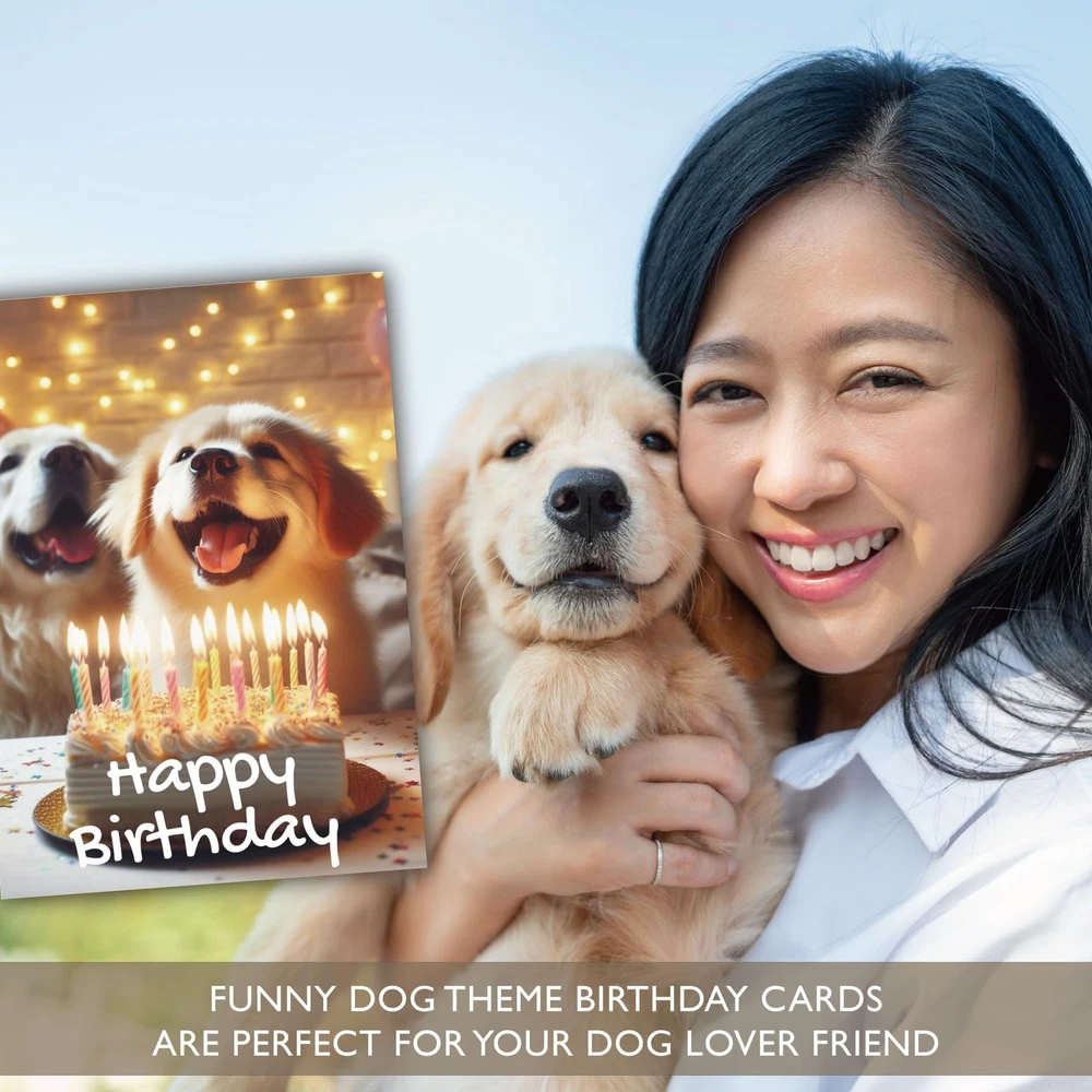 Celebrate your furry friend's big day with our charming Dog Birthday Card! This unique and playful card features a delightful design that perfectly captures the joy and excitement of your pup's special occasion. Made with high-quality, eco-friendly materials, it's ideal for wishing your four-legged companion a "Happy Birthday" or gifting to a fellow dog lover. Key Features: Vibrant Design: Eye-catching, colorful illustrations that bring a smile to any pet owner's face. High-Quality Craftsmanship: Printed on premium, recyclable paper for an eco-conscious touch. Blank Interior: Personalize your message to make the card extra special for your beloved pup or dog-loving friend. Matching Envelope Included: Securely enclose your greeting in a coordinating envelope for added charm. Show your dog or a friend how much you care with this adorable and memorable Dog Birthday Card. It's a paw-some way to spread joy and love, leaving tails wagging! Perfect for dogs of all breeds and ages. Add this cute card set to your cart today! Adorable Designs: Each card features a unique and colorful design, including playful pups and birthday-themed illustrations that are sure to make tails wag. High-Quality Paper: Made with durable, eco-friendly materials, these cards deliver a premium feel while being gentle on the environment. Heartfelt Sentiments: Each card includes a thoughtful message inside, perfectly expressing warm wishes for a happy birthday to the beloved canine. Matching Envelopes Included: Each card comes with a coordinating envelope for secure, stylish delivery of your heartfelt greetings.