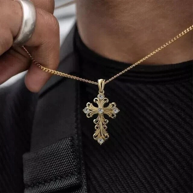 Occasion: Anniversary, Birthday, Christening, Christmas, Confirmation/Communion, Engagement, Father's Day, Graduation, Mother's Day, Valentine's Day, Wedding Color: Yellow Pendant Shape: Cross Pendant/Locket Type: Charm Main Stone Creation: Simulated Type: Pendant Style: Pendant UPC: Does Not Apply Metal: Sterling Silver Secondary Stone: NA Main Stone Shape: Round Metal Purity: 925 Wholesale: Yes Country of Origin: Unknown Theme: Beauty Seller Notes: ““Freshly made on order with quality and buyer satisfaction. No old stocks.”” Antique: No Handmade: Yes Main Stone Treatment: Unknown Cut Grade: Excellent Main Stone Color: White Personalize: Yes gtin13: Does Not Apply Customized: Yes Country/Region of Manufacture: India Seller Warranty: Yes Closure: Spring Ring Material: Stone, Metal Number of Gemstones: 00 Setting Style: Prong Chain Type: Cable Base Metal: Yellow Gold Plated Brand: sp_jewels Main Stone: Simulated Diamond Vintage: No