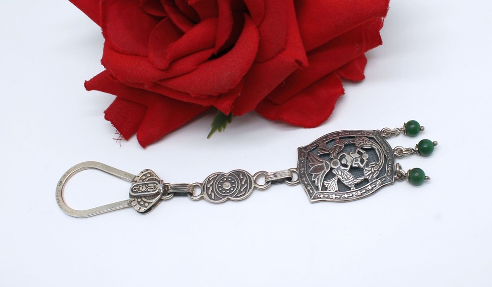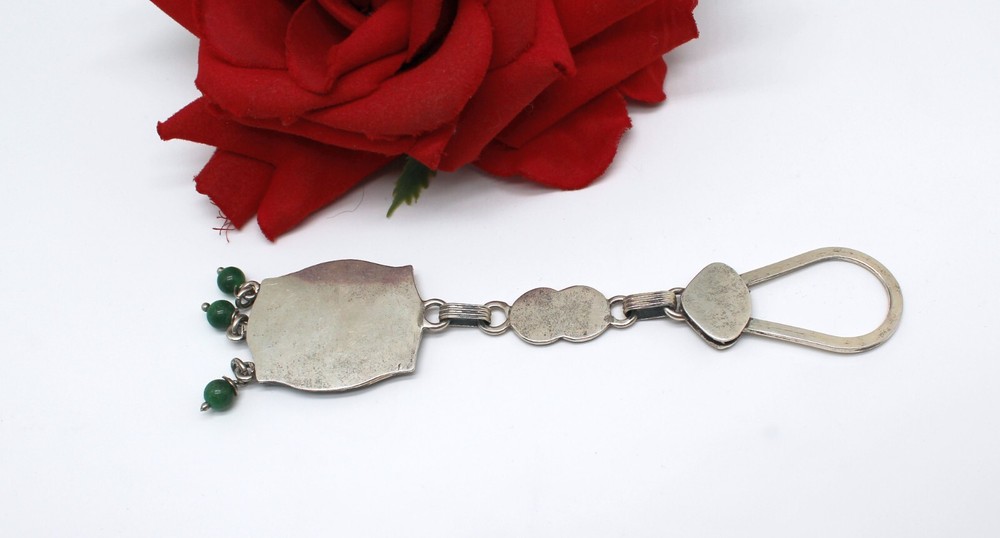 This is a fabulous sterling silver ornate key chain with green bead accents. It is stamped with a tiny hallmark and does test as sterling silver. The entire piece is about 6 inches long. It weighs 25.3 grams. Please consider donating jewelry for our store as supplies are limited due to covid. Please keep reading to find out how your bid will help homeless pets..... Whiskers Rescue Inc. Whiskers Rescue Inc. is a small non profit dedicated to the humane reduction of the feral and stray cat population though trap, neuter, return. We offer a free TNR voucher program to low income, NJ residents, to allow caretakers to spay/neuter the feral cats they feed. We provide free equipment rentals and training to anyone who wants to transition from feeding to becoming a caretaker. We rely heavily on ebay sales and jewelry donations to fund the program. We fund 500-600 spay/neuter surgeries per year preventing thousands of homeless kittens from being born on our streets. We would like to thank everyone here on ebay for all of your generous support.