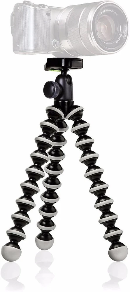 Flexible: Wrappable legs allow you to secure professional camera equipment to virtually any surface Versatile: Mount mirrorless cameras, flashes, speakers, video lights or any device weighing less than 1 kg (2.2 lbs) with a ¼"-20 tripod mount Portable: Compact & lightweight for easy transport in pocket, handbag or backpack Strong: Holds devices weighing up to 1 kg (2.2 lbs) Premium grade ABS GorillaPod and compact ball head support Compact mirrorless cameras and devices weighing up to 2.2 lbs. Can be configured for still photography, cinematography, vlogging or live streaming in 3 modes: grip, wrap or stand. Durable: Over 100 plastics tested to identify best material