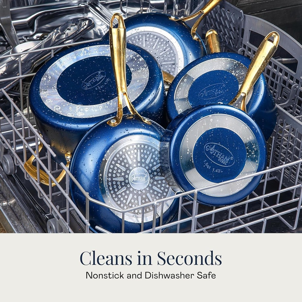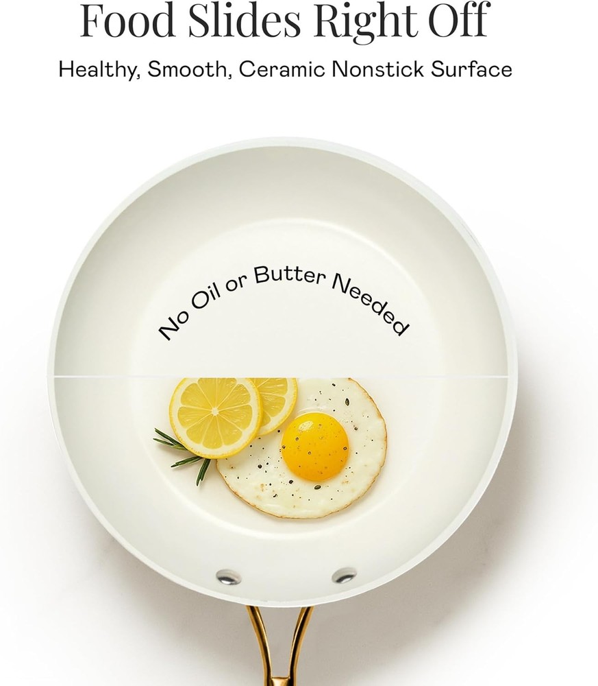 Ultra non-stick ceramic coating reinforced with titanium—cook with little to no oil and cleanup in seconds Oven-safe up to 500 °F, dishwasher-friendly, and compatible with most stovetops (not induction for stockpot) Lightweight and visually appealing—stay-cool handles and sleek color options add style and function Complete 12-piece set includes everyday essentials plus a steamer and square pan for versatile cooking