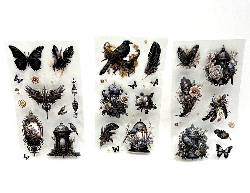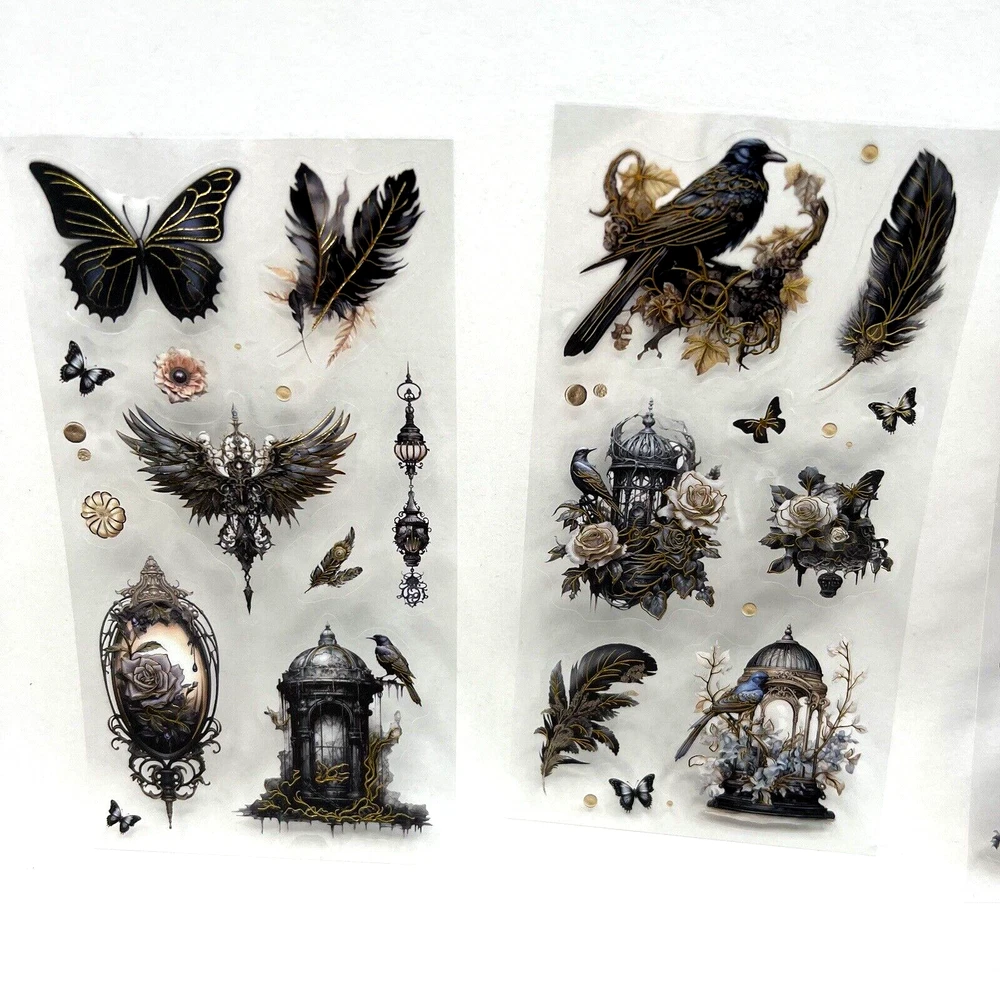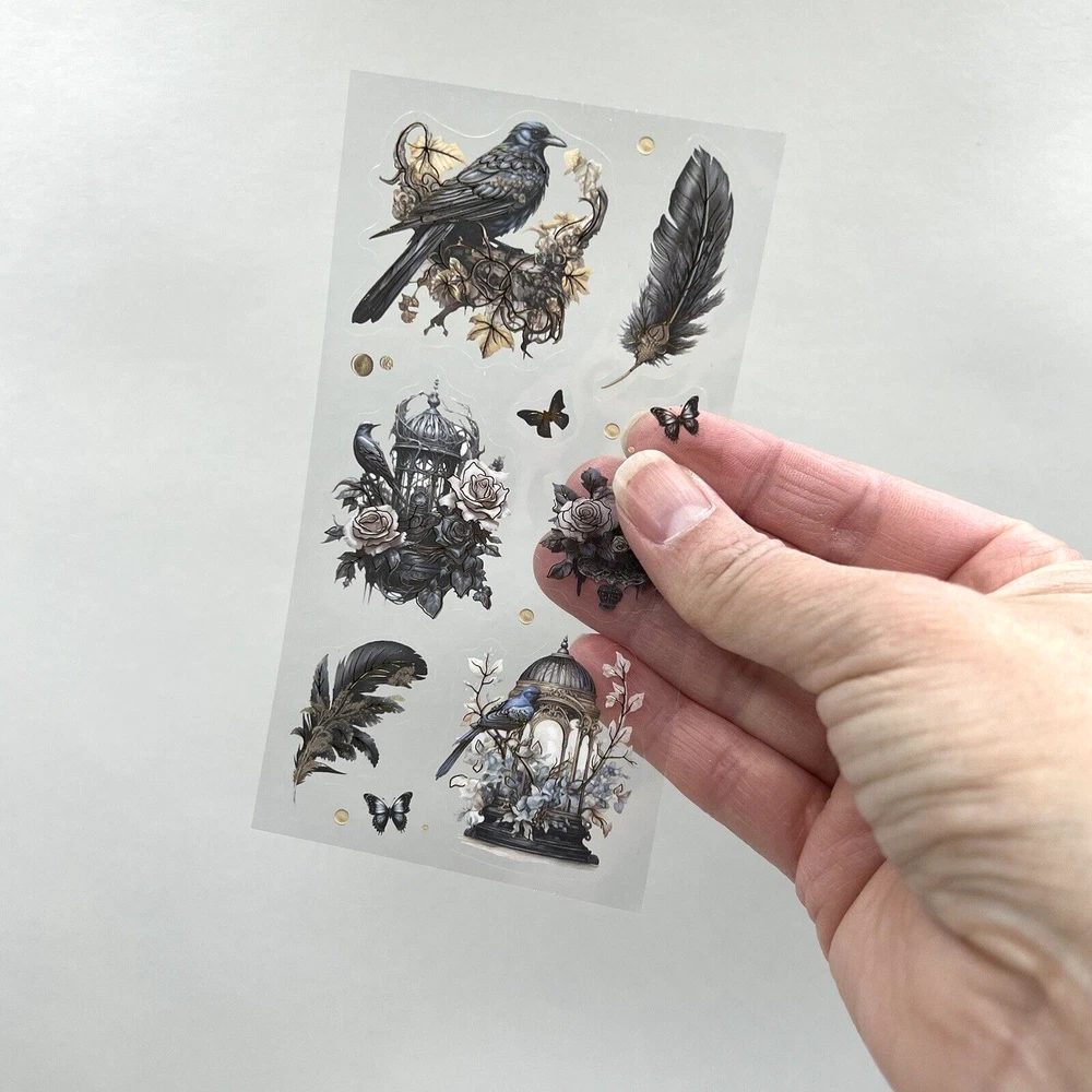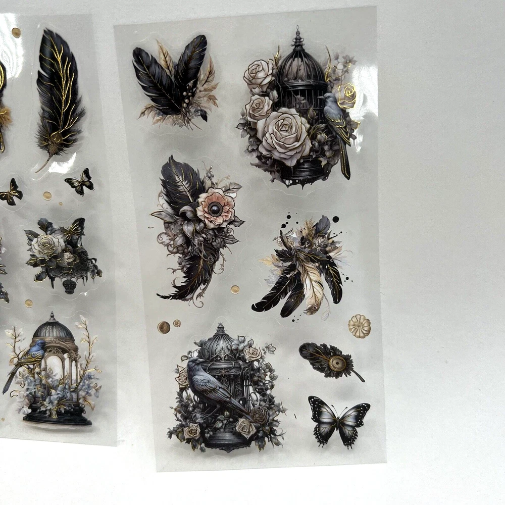 3 sheets. Images printed on PET (clear flexible plastic) with a clear peel off backing. Stickers are kiss cut (Some of the tiny designs are not kiss cut. The tiny butterflies, dots and tiny flowers. If you want to use these tiny ones, they will have to be cut out with scissors.) Gold foil accents. The sheets measure approx. 5 1/2 x 2 3/4. I have more stickers, washi tape and paper for sale. I do combine shipping. Please put all the items you want to purchase in ONE cart and then pay. I will refund you the difference in shipping after shipping label is printed. Let me know if you have any questions through eBay messaging. Thank you for stopping by!