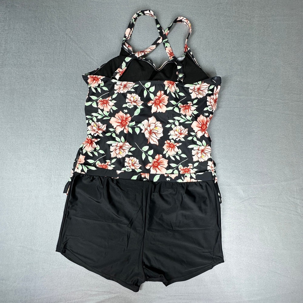 Grace Karin Tankini Womens 2XL Black Floral 2 Piece SwimSuit Shorts Crisscross Gender: Women's Brand: Grace Karin Size: 2XL or XXL Color: Black with Orange and Green Floral Pattern Two Pieces Tankini Top Adjustable Crisscross Straps Removable Bra Pads Ruched Chest with Cutout Boy Shorts Polyester Blend Made in China Approximate flat lay measurements: 17.5" Under the Bust 16.5" Waist New with Tags (NWT) *Colors may vary depending on lighting and individual viewing devices Offers Welcomed Bundle Discounts Available Fast Shipping Thank you for shopping my closet! Location A - 1766 Summer, Beach, Lake, Pool, Poolside, Vacation, Swimming, Swimmer, Swim, Cruise, Resort, Spring Break, Swimsuit, Swimwear, Casual, Preppy, Two Piece, Two-Piece, Plus, Plus Size, Womens, Women's, Tankini, Tank Top, boy shorts