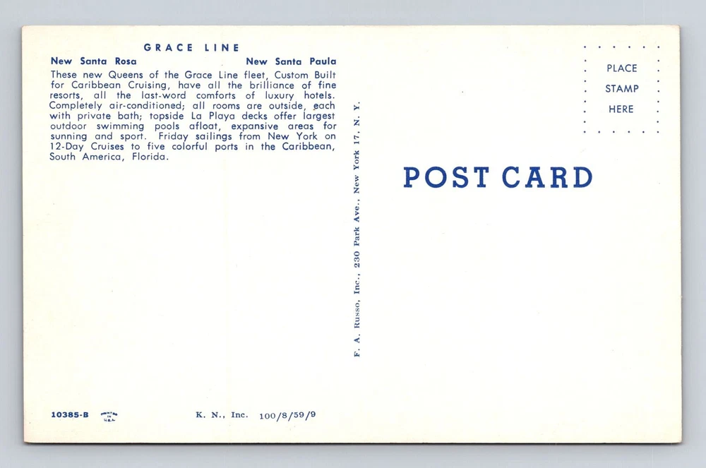Grace Line, Custom Built Caribbean Cruise, Ship, Transportation Vintage Postcard