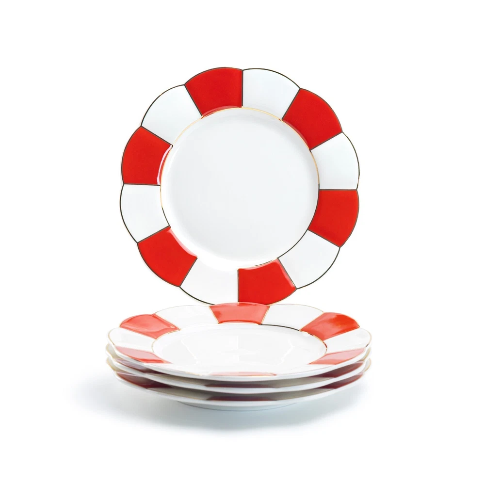 Set of 4 - Four 8" plates Specifications Dessert Plate Diameter: 8" Material Porcelain Gold Care Advice Dishwasher Safe Hand wash recommended Not microwave safe due to gold trim
