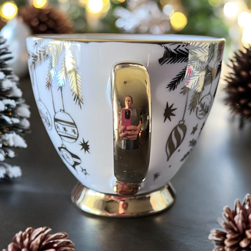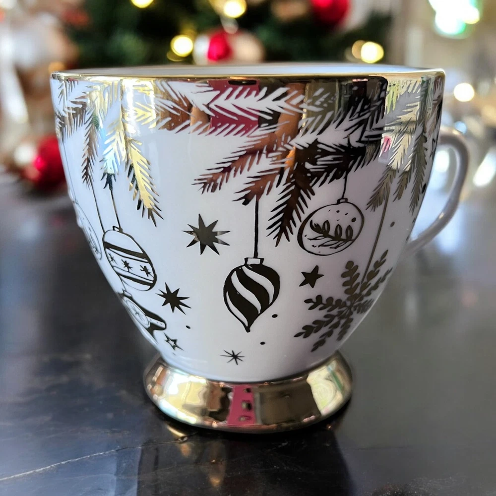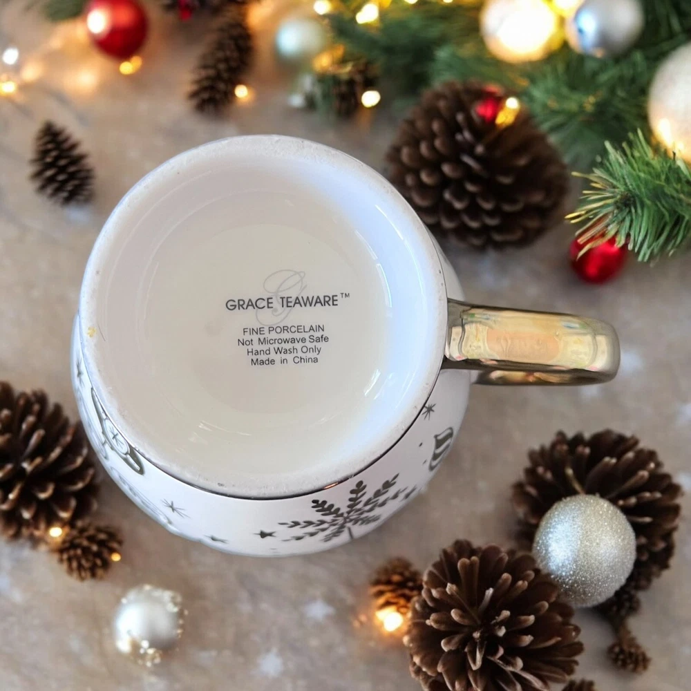 Add some festive cheer to your tea time with this beautiful Grace Teaware holiday ornament tea cup. The cup features a stunning ornament pattern that's perfect for any occasion, whether it's a bridal shower, engagement, Christmas, winter, New Year's, anniversary, or just a regular Sunday afternoon tea. With a generous capacity of 12 fl oz, this ceramic mug is perfect for your daily tea fix or as a gift for your loved ones.