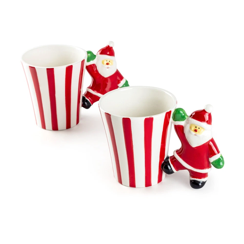 Santa mug with hand crafted & painted 3D Santa figurine handle Specifications Mug Dimension: 4” Height x 6.25" Width x 3.75" Depth Capacity - 10oz Material Ceramic Care Advice Microwave Safe Dishwasher Safe Hand wash recommended