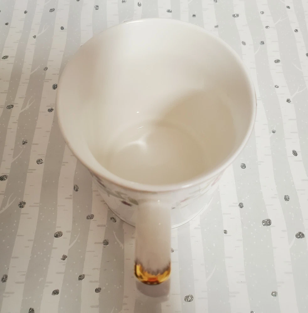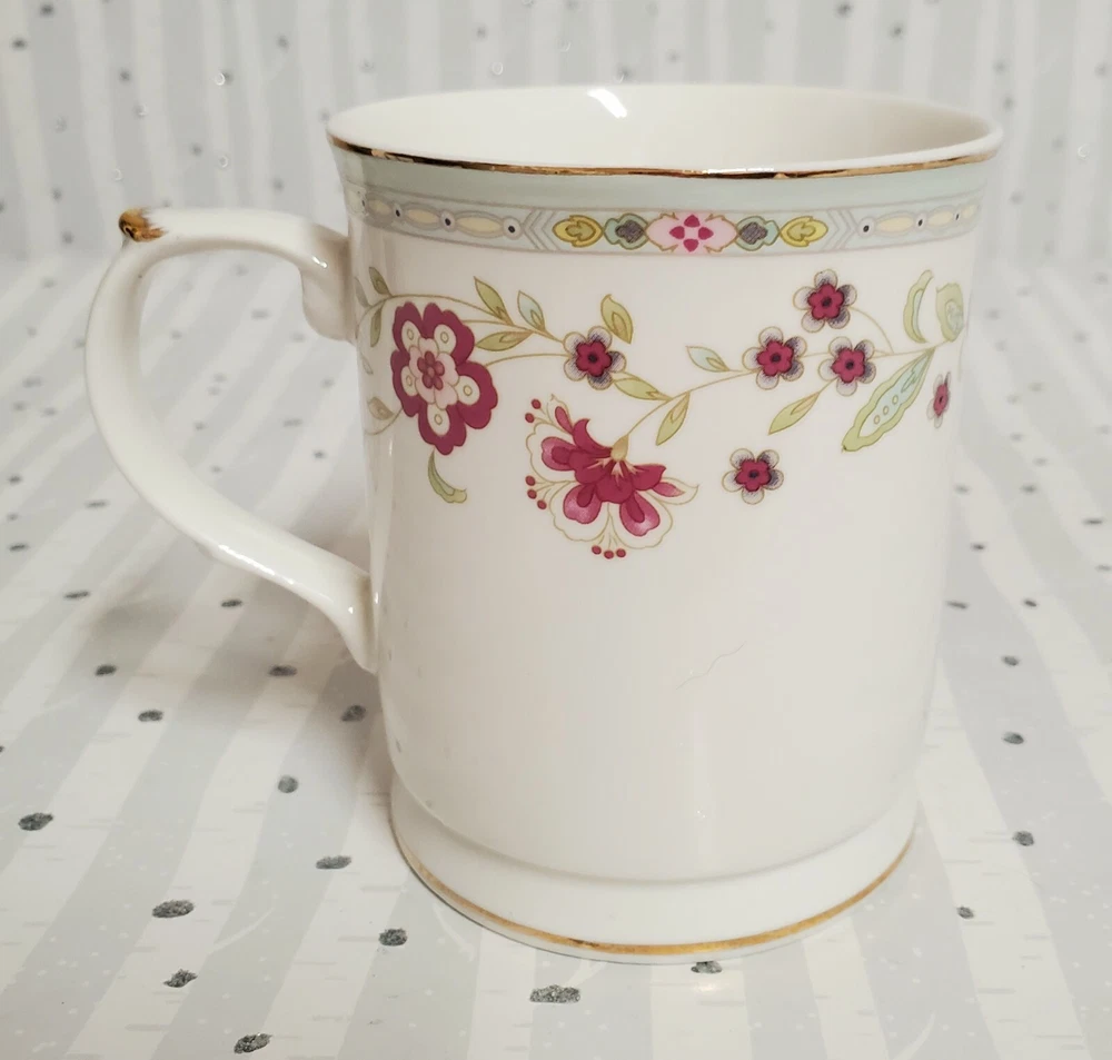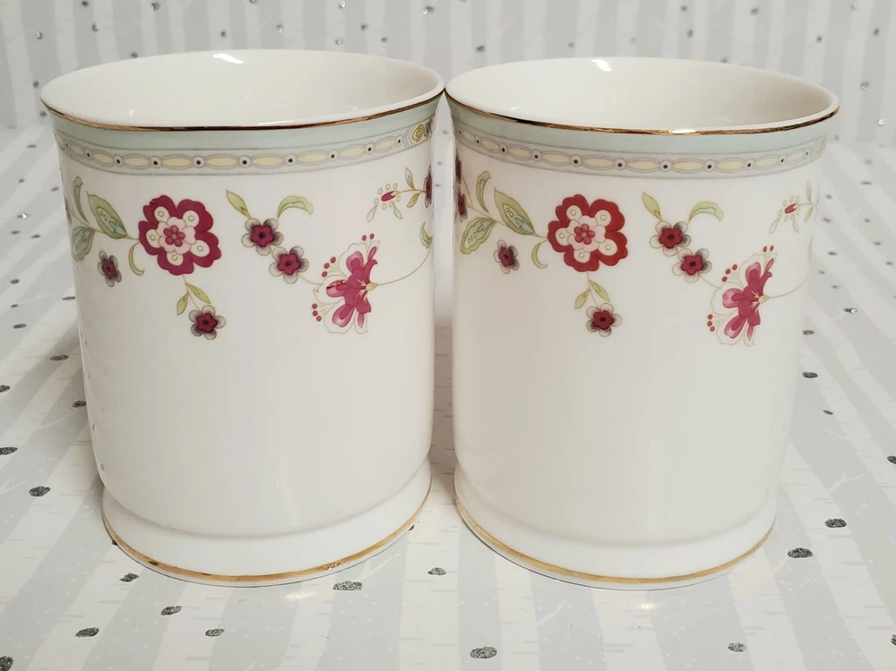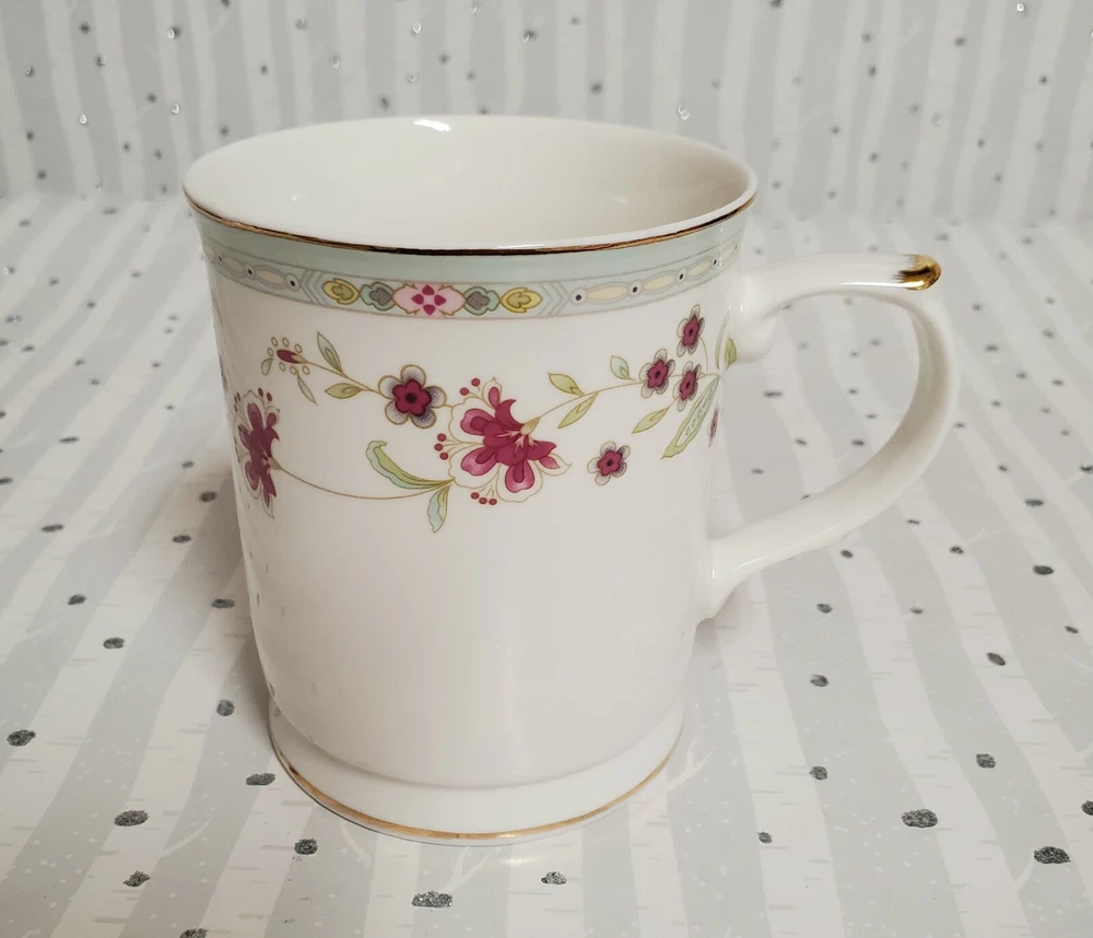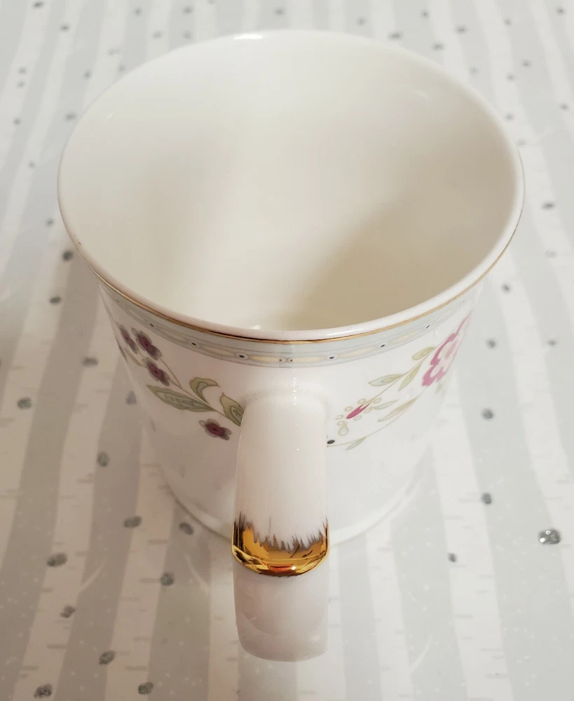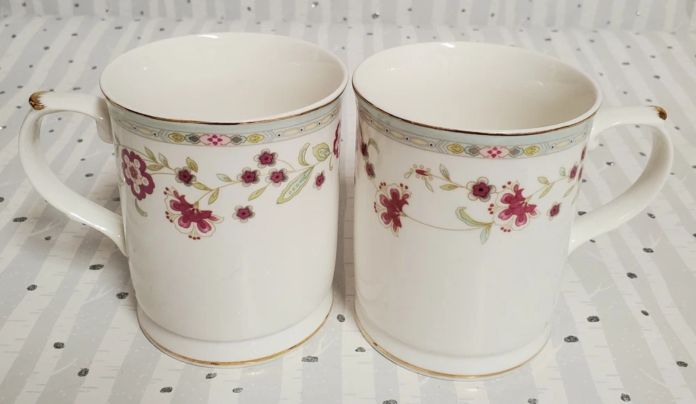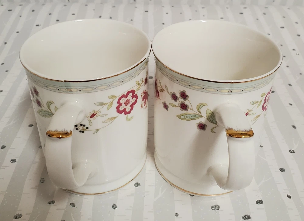 Grace Teaware Set of 2 Fine Porcelain Mugs White, Floral & Gold Rims 12 oz each . Rim of mug is gold. The handle also has a piece of gold color. Dishwasher safe. Not safe for microwave. Made in China. FREE SHIPPING