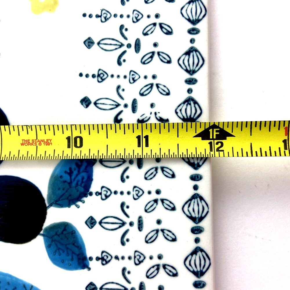 Grace's Teaware Ceramic Trivet Tray Hanging Wall Art Width: 8 1/2" Length: 12" Weight: 3 lbs. Vibrant Colors with raised dots in flower middles. Has hole in the top for hanging. Found at an estate sale.