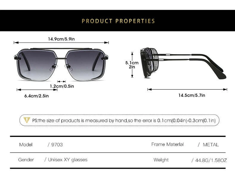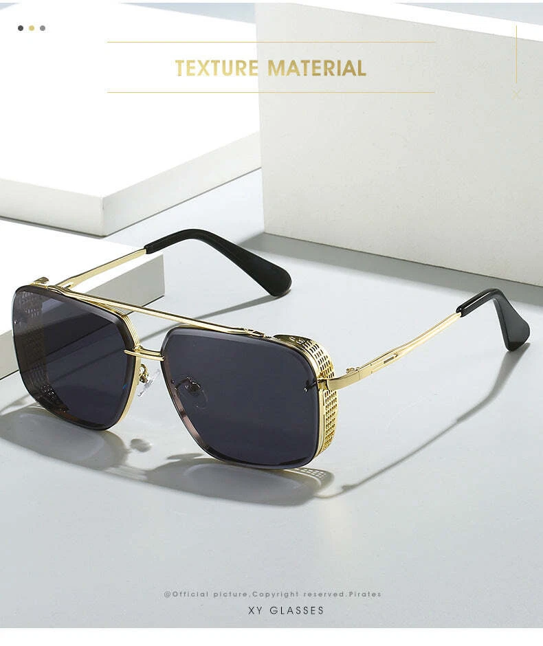 Product information: Applicable scenarios: sun protection, travel color: black frame gradient gray sheet, gold frame full gray sheet, gold frame double dry, gold frame tea blue lens, gold frame green yellow sheet Size: Regular Popular elements: squares Style: Versatile, elegant, casual Packing list: Sunglasses*1 Product Image: