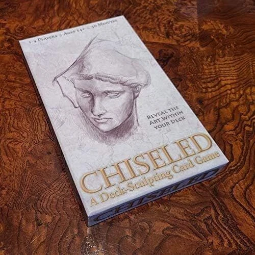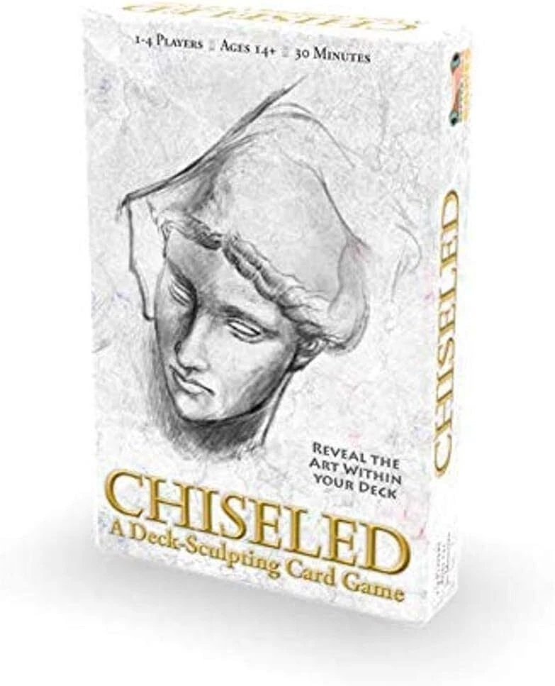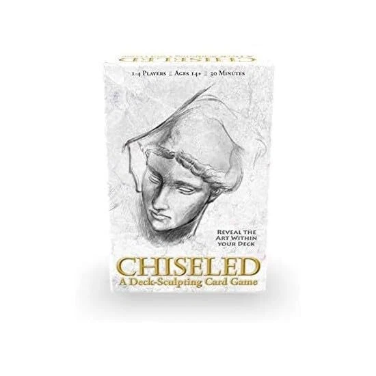 Three critics. set of tools. No excuses! Chiseled is a competitive deck-sculpting game about sculpting marble. Play as artists in a shared studio, working to complete your sculptures by the time any player has checked in with the three Critics enough times to get . Selecting Tool at a time from the shared workbench, remove and accentuate cards from your starting deck of cards to improve its artistic value, and please the critics for bonuses. Each Tool offers a unique method of interacting with the marble, but they'll only become available again once all the Tools have been used! 1-4 Players, Ages 14+, 30-minute play time Remove and accentuate sculpture cards to reveal the art within your deck Over a dozen unique Tools to manipulate your deck or interfere with opponents Featuring solo challenge modes to sculpt alone