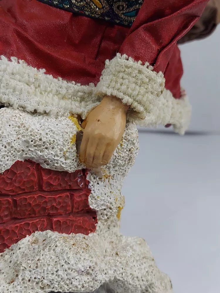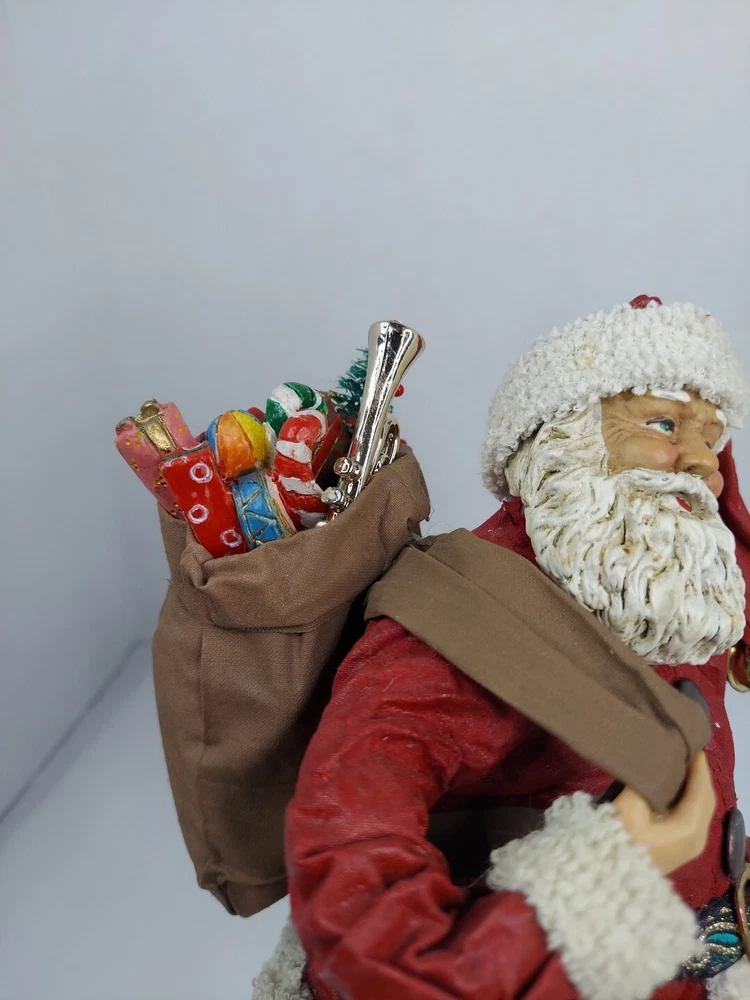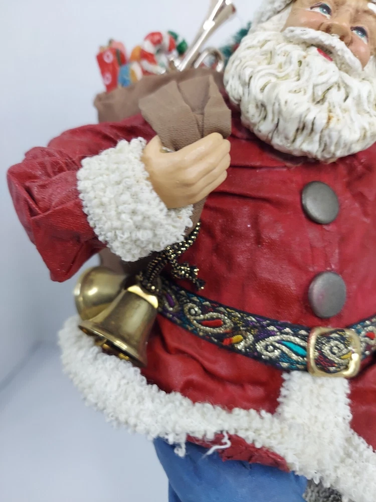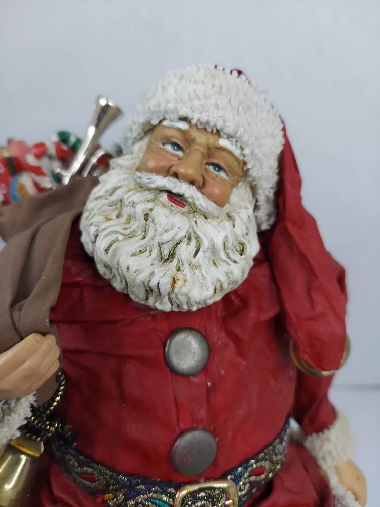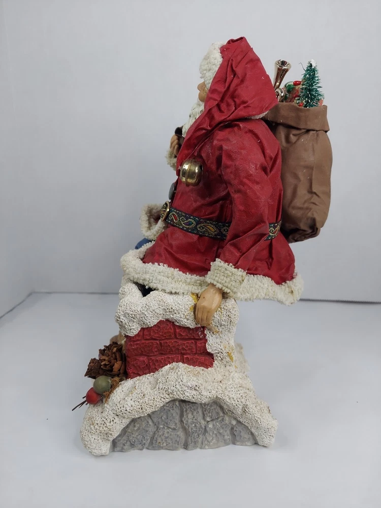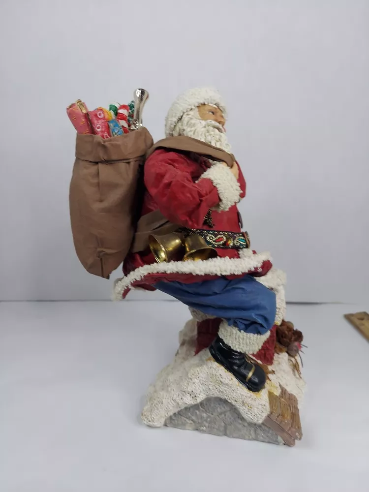 Grandeur Noel Christmas Fabric Mache Santa Claus 10” W Gifts Bells Down Chimney Please see the pictures for measurements and condition.