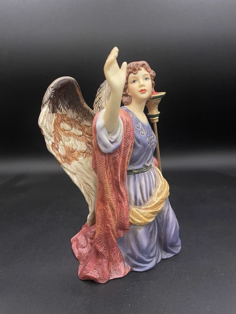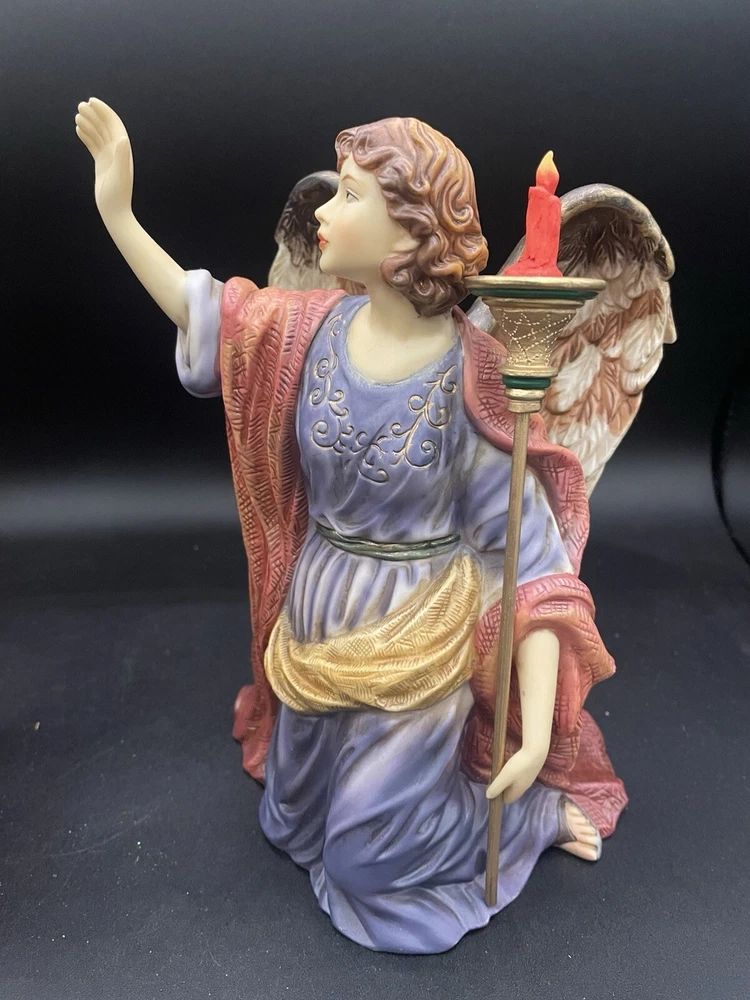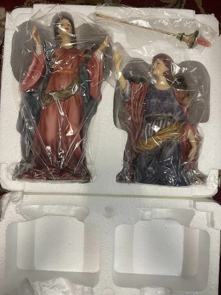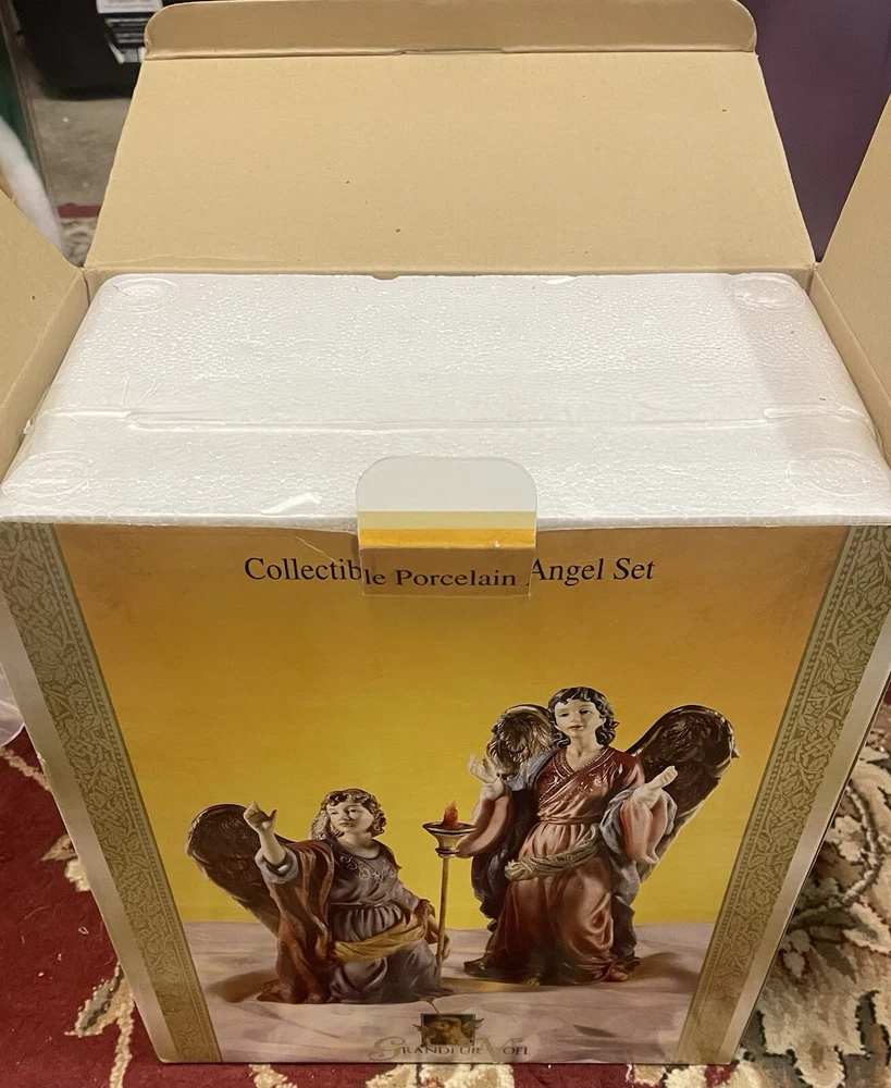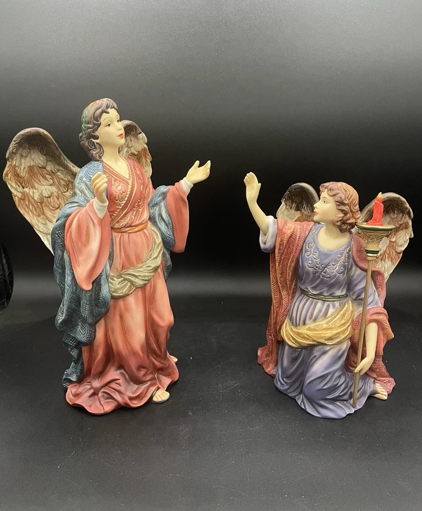 Figurines are in very good condition. No chips, cracks, and repairs identified please reference pictures. This exquisite set of two porcelain angels is a must-have for any collector or lover of religious figurines. The hand-painted angels are part of the Grandeur Noel collection and feature intricate details and vibrant colors. Measuring between 7.75" and 10", they are perfect for displaying on a shelf or in a case. The angels are designed with an asymmetrical shape and feature a traditional style that is suitable for all occasions. They are made from high-quality porcelain and are part of the 21st Century era. The set includes two figurines and is a perfect addition to any collection.