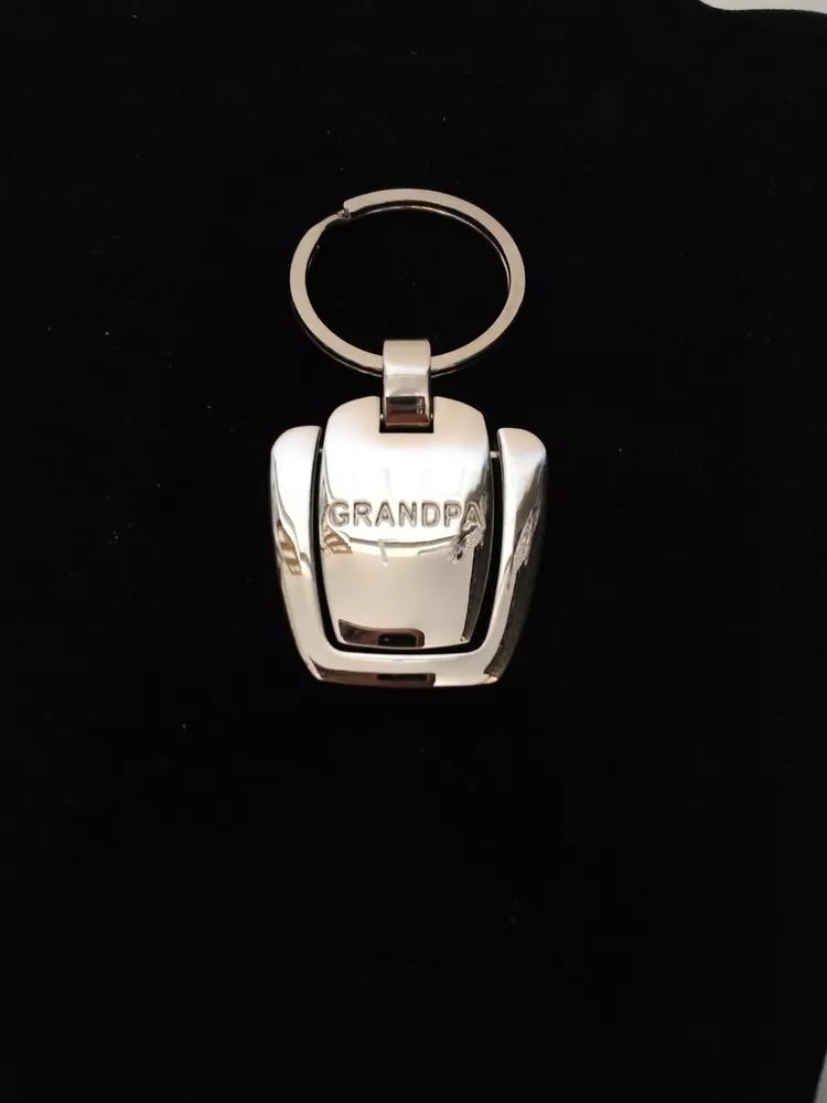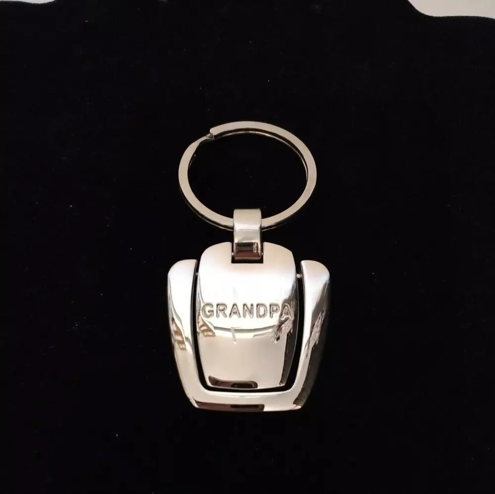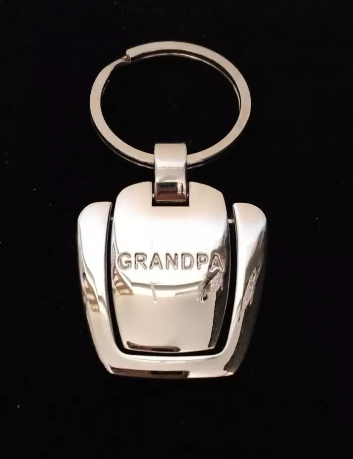 New With Gift Box Grandpa Engraved Medallion Key Ring Shiny Silver Tone Metal Medallion Moves In Motion Nice Solid As Seen In Photos From A Smoke Free Home