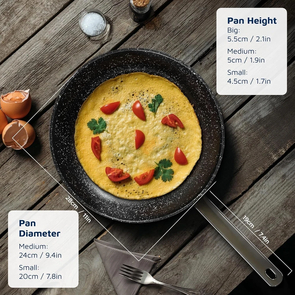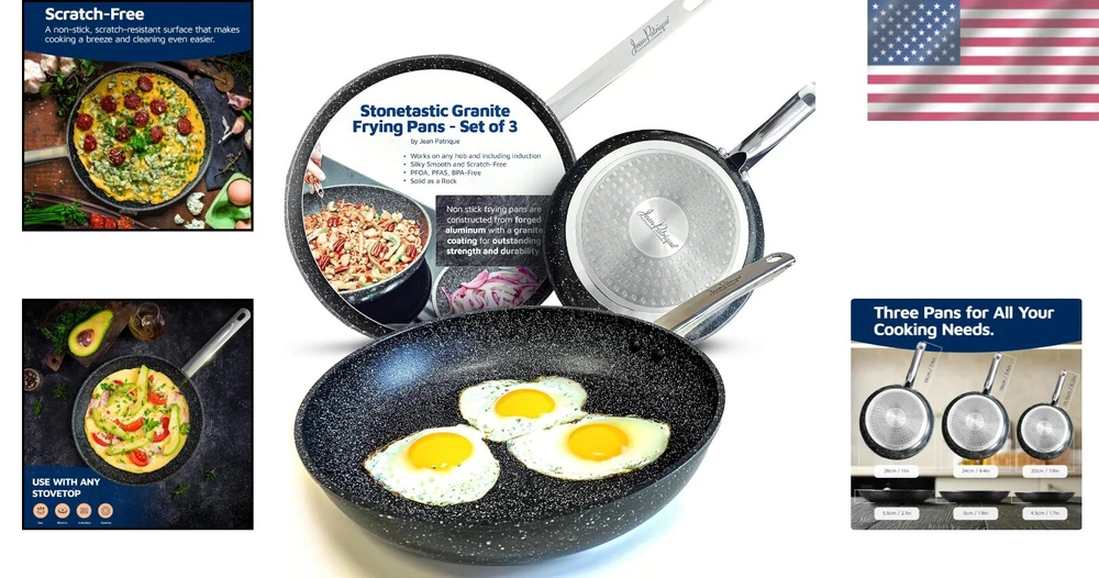 Granite Non-Stick Frying Pans Set of 3 - Induction Cookware for All Stovetops ‹ › ‹ › ‹ › ‹ › ‹ › ‹ › ‹ › ‹ › ‹ › Granite Non-Stick Frying Pans Set of 3 Induction Cookware for All Stovetops Product Highlights: Set of 3 Non-Stick Frying Pans: Enjoy the culinary experience with these elegant granite nonstick pans - perfect for everything from the fluffiest baked eggs to crispy, caramelized bacon. Silky Smooth and Scratch-Free: The stunning granite coating not only enhances the aesthetic appeal but also ensures a non-stick, scratch-resistant surface for effortless cooking and cleaning. Solid as a Rock: Forged from aluminum with a granite coating, these pans promise exceptional strength and durability. Handles crafted from high-strength stainless steel guarantee longevity and reliability. Compatibility: Our omelette pan works seamlessly on all types of stovetops including induction, electric, ceramic, and gas. Plus, each pan is oven safe up to 280 °C. Versatile Gift Option: The set includes three versatile sizes - Small (20 cm / 7.8 inch diameter), Medium (24 cm / 9.4 inch diameter), and Large (28 cm / 11 inch diameter) to cater to any culinary requirement. Why Choose Our Granite Non-Stick Frying Pans? Redefine your cooking experience with our beautifully designed Granite Non-Stick Frying Pans set. Each pan is crafted to offer the perfect combination of style and functionality, allowing you to unveil your culinary creativity with ease. Every meal is a celebration of flavor and ease, made possible by the outstanding non-stick technology that ensures your culinary masterpieces slide off effortlessly. This set is not just a kitchen essential but an elegant addition to your cooking arsenal. With durability that withstands the test of time, these pans promise a lifetime of gourmet experiences. They also make a thoughtful gift for both aspiring and seasoned chefs. Elevate your cooking and order your Granite Non-Stick Frying Pans Set today for a lifetime of exquisite dining experiences! Shipping Free & Fast Shipping - We offer free shipping to most of the USA with a normal delivery time of 3-7 days. However, due to the current situation, additional delivery time (up to 3 weeks) may be required for some items. Alternative Carriers - We may use alternative carriers (e.g. USPS, FedEx, UPS, etc.) to ensure your package arrives safely and on time. Due to the use of multiple carriers, we are unable to provide a tracking number automatically. Handling Time - Orders are processed and shipped within 1-2 business days of receiving cleared payment. Shipping Restrictions - Shipping to Alaska, Hawaii, Puerto Rico, Guam, and other US territories may incur shipping charges or delivery restrictions. Please contact us before ordering, or your order can be refunded/cancelled. State Restrictions - There may be restrictions based on your state of purchase. For example, certain items may not be shipped to California due to state regulations. Contact for Tracking Updates - If you require tracking updates or have any concerns about the delivery of your order, please feel free to contact us, and we will be happy to assist you. Return 30-Day Hassle-Free Returns - We want you to be completely satisfied with your purchase. If you are not, you can return the item within 30 days of receiving it for a full refund or exchange. Easy Return Process - To start a return, simply contact us and we will provide you with a prepaid return shipping label and detailed instructions. Restocking Fee - There are no restocking fees for returns. However, the buyer is responsible for return shipping costs if the return is not due to a seller's error. Refund Processing Time - Refunds will be processed within 5 business days of receiving the returned item in its original condition. Payment We accept all major credit cards, PayPal, and Apple Pay for your convenience. Your payment information is secure and encrypted to ensure a safe and seamless transaction. Please complete your payment within 3 days of purchase to avoid any delays in shipping. Feedback Your feedback is extremely important to us. We strive to provide the best products and customer service possible. If you are satisfied with your purchase, please take a moment to leave us a positive review. If you have any concerns or issues with your order, please contact us before leaving negative feedback. We are committed to resolving any problems and ensuring your satisfaction. Contact Us If you have any questions or concerns, please feel free to reach out to our customer support team. You can contact us through the eBay messaging system. We are available Monday to Friday, 9:00 am to 5:00 pm EST, and we will do our best to respond to your inquiry within 24 hours. Buy it now and enjoy a pleasant shopping experience! UPC: Not Set Unit Quantity: 1 Stove Type Compatibility: Electric,Gas,Induction,Ceramic Material: Aluminum,Stainless Steel,Granite Coating Features: Non-Stick,Oven-Safe,Scratch-Resistant Set Includes: Frying Pan Type of Oven: Electric,Gas,Induction Brand: Unbranded Surface Coating: Granite Color: Gray Type: Frying Pan Set Item Length: Not Set Item Width: Not Set Item Diameter: 11 in MPN: Not Set Country/Region of Manufacture: Not Set Number of Items in Set: Three-Piece Shape: Round Item Height: Not Set Manufacturer Warranty: Not Set Item Depth: 2 in Heat Resistance: Up to 280°C Model: Not Set Item Weight: 2.2 lb Unit Type: Not Set