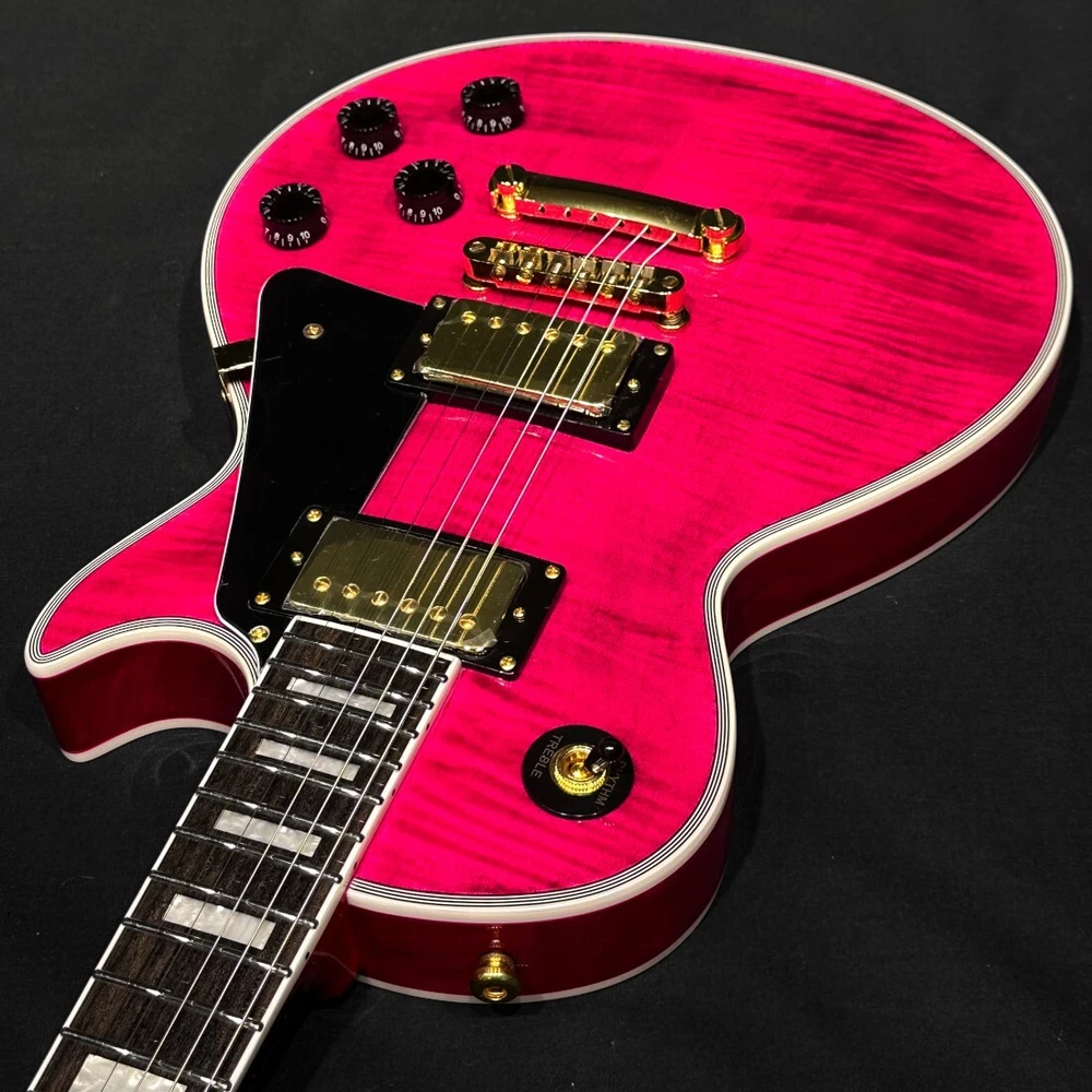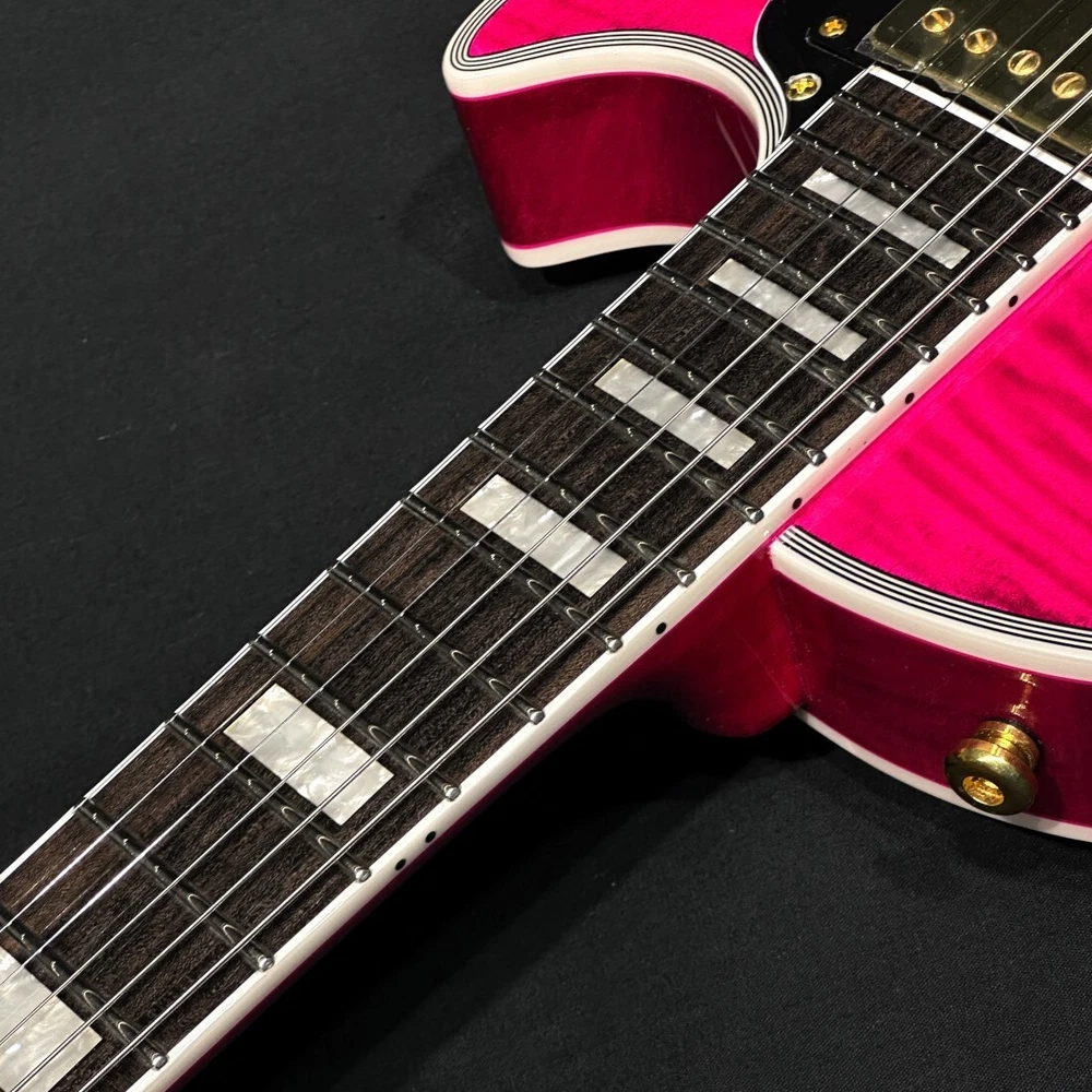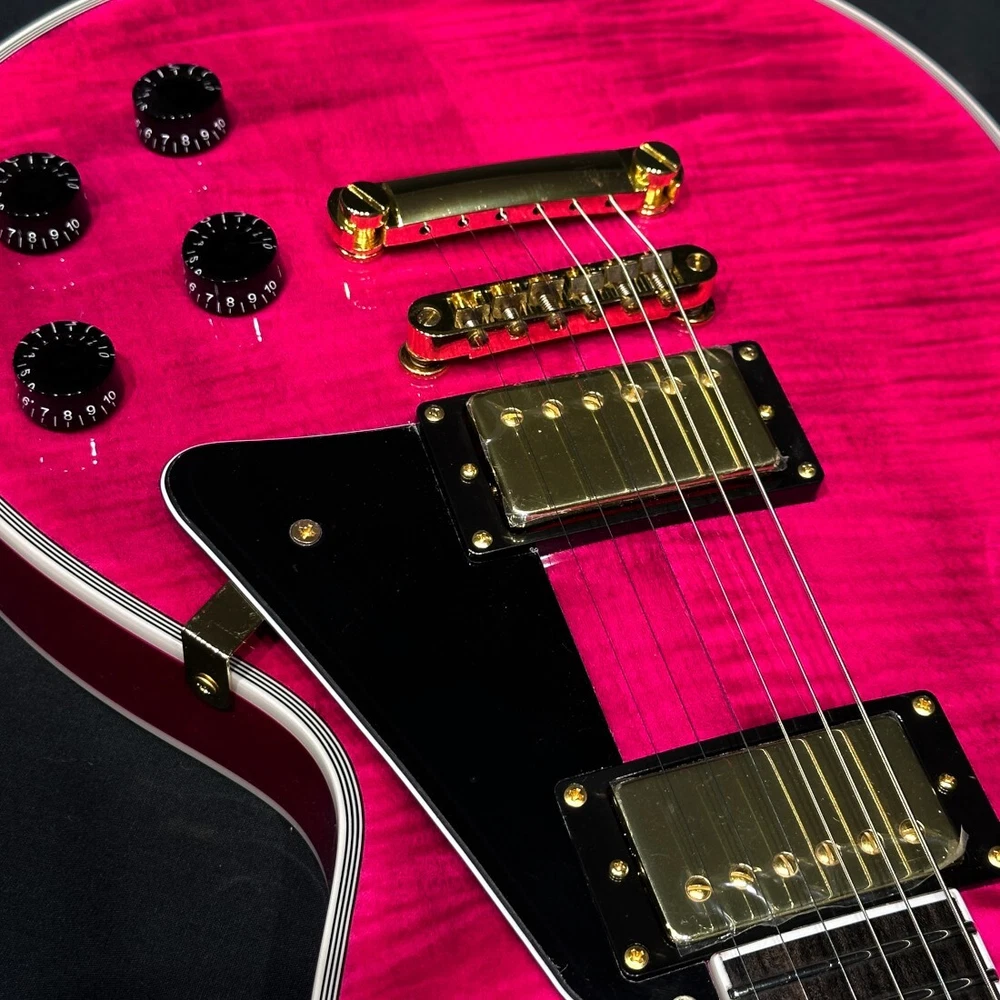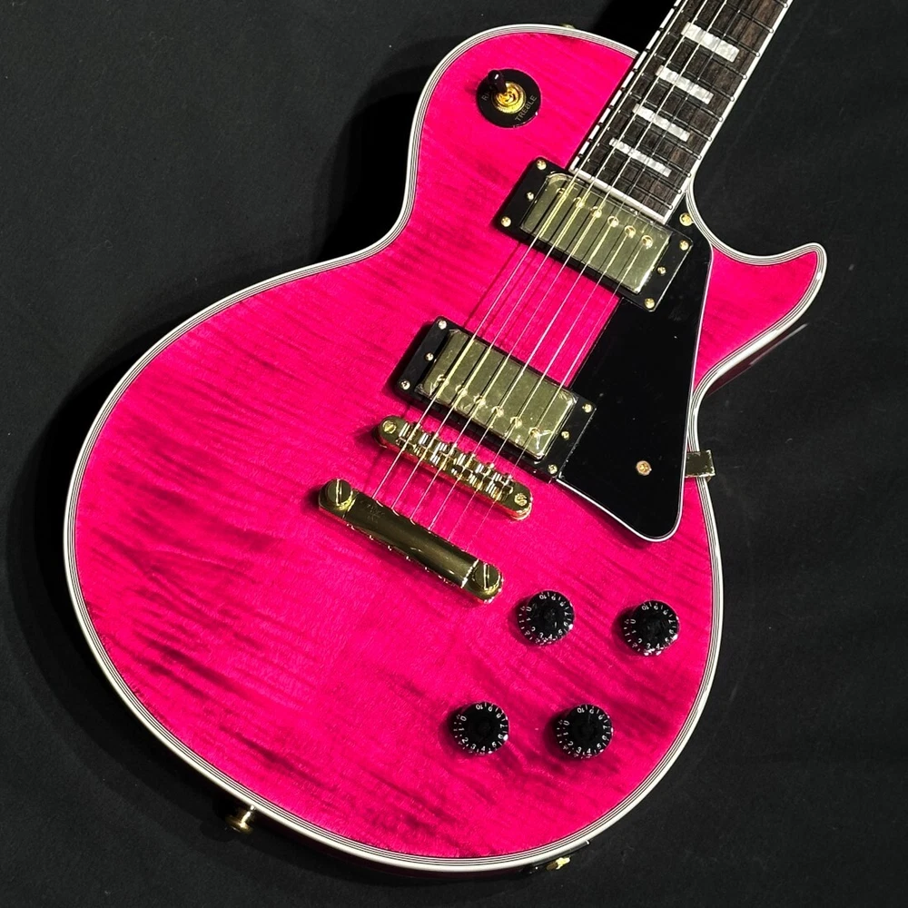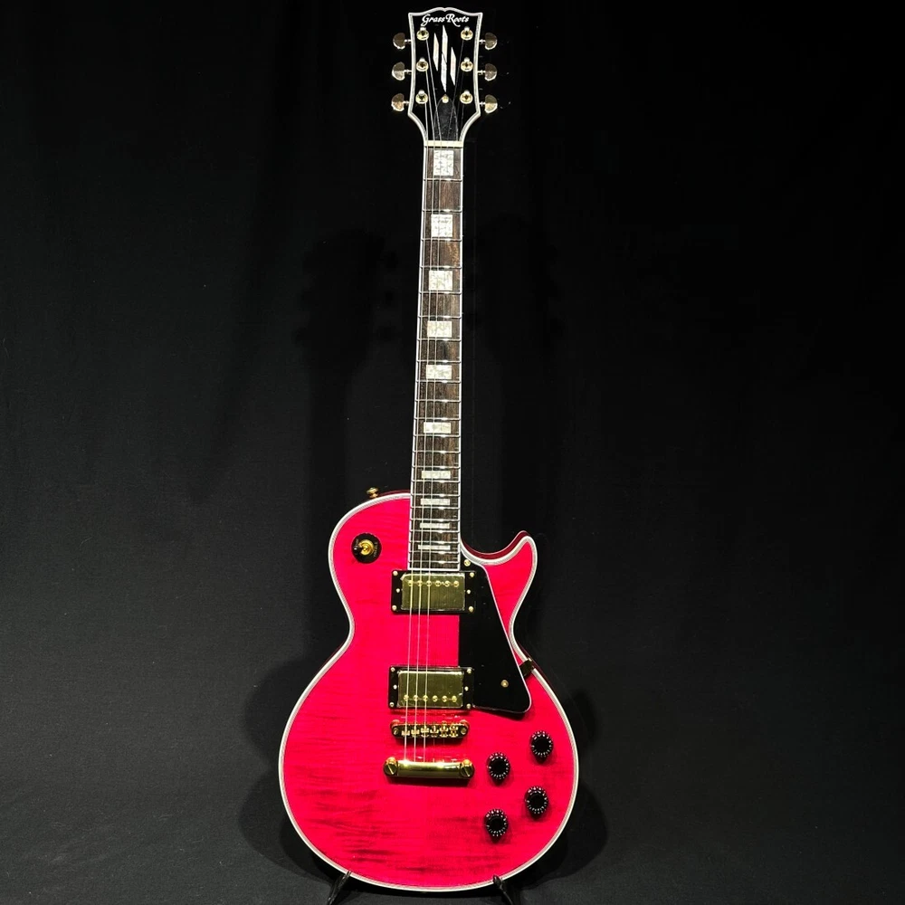 Brand: Grass Roots Body Material: (Top) Flame Maple Veneer on Hard Maple (Back) Mahogany Model: Les Paul Custom Personalization Instructions: Not Specified Neck Material: Mahogany String Configuration: 6 String Model Year: Unknown Handedness: Right-Handed Type: Electric Guitar Fretboard Material: Rosewood Body Type: Solid Body Color: See Thru Pink gtin13: N/A UPC: N/A Country/Region of Manufacture: Unknown Series: N/A Number of Frets: 22 Set Includes: Gig Bag MPN: G-LP-CTM/FM