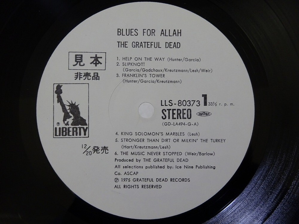 CATEGORY ROCK POP JAZZ SOUL/FUNK JAPANESE HOUSE/TECHNO LATIN BRAZIL OST HIPHOP TERESA TENG BLUES REGGAE CLASSICAL WORLD ARTIST The Grateful Dead TITLE The Grateful Dead Blues For Allah Liberty LLS-80373 Japan promo VINYL LP LABEL Liberty FORMAT LP COVER E- (Excellent minus) S (Stain) spine is cracked,cornerbump VINYL E+ (Excellent Plus) OBI STRIPE NONE COMMENTS The pictures in this page show actual item which you will receive. Accessories not shown in the photo are not included. Please note that shipping rates are for single LPs. Gatefold & Double albums count as 2LPs, 2CDs Triple albums count as 3LPs, 3CDs & Box Sets are counted per LP & CD. ▶ Grading Policy All gradings are visual and very strict. ▼ Record grading S (Sealed) Record is still sealed and has never been played. M- (Mint minus) Like new. The record does not have any visible light scratches or cracks. E+ (Excellent Plus) The record has hardly visible small scratches etc. The label may have some * In effect E+ means almost faultless. We think you can find records graded E+ quite satisfactory, unless you are a collector who is determined to own a brand new record. EX (Excellent) There are some light scratches and cracks on the record (which can be felt by touch). Sometimes these slight defects may influence sound. *Although some noise is audible in quieter sections of the record, such as fade-outs, and it is especially conspicuous between tracks, it does not have a profound influence on the whole record. The label may have discolorations or ring wear. EX- (Excellent Minus) It is worse than the above, but there are no needle jumps. There is some noise. The label may have discolorations or ring wear. VG+ (Very Good Plus) It is worse than the above. But,No Needle jumping. There is some noise. The label has discolorations or ring wear. VG (Very Good ) It is worse than the above. ▼ Cover grading S (Sealed) Record is still sealed and has never been played. M- (Mint minus) Like new.The Cover does not have any lines, folds, scratches, cracks, spots, or other similar folds. E+ (Excellent Plus) The Cover has small lines / folds / scratches / cracks / spots / ring wear, or other similar faults. E (Excellent) The Cover may have light lines, folds, scratches, cracks, spots, some writing, some tape or sticker (or traces of such) and ring wear. It may be slightly dirty. E- (Excellent minus) It is worse than the above, The Cover may have light lines, folds, scratches, cracks, spots, some writing, some tape or sticker (or traces of such) and ring wear. The Cover may be dirty. VG+ (Very Good Plus) It is worse than the above,The Cover has striking folds, scratches, cracks, spots, ring wear, some writing, scotch tape, or stickers. VG (Very Good) It is worse than the above. ▼ OBI grading S (Sealed) M- (Mint minus) E+ (Excellent Plus) E (Excellent) E- (Excellent minus) VG+ (Very Good Plus) VG (Very Good) - - - - ▼ Other Abbreviations W Writing ST Stickers, tape WD Water Damage S Stain M Mold C Corner cut P Punch hole D Drill hole SP Cover Split DJ promotion copy SF Same Flip ▼ OBI Abbreviations OW OBI Writing OST OBI Stickers, tape OWD OBI Water Damage OS OBI Stain OM OBI Mold OP OBI Split - - - - - - - - - - ▼ Degree of Warping Vinyl Condition: 「Warp 1」 Vinyl Condition: 「Warp 2」 Vinyl Condition: 「Warp 3」 ▼ NOTICE All gradings are visual. Please note that we only perform lightly cleaning. An abbreviation of the country of origin is listed next to/below the label. Warps, heat damage, or chemical changes due to polyurethane sleeves and vinyl chloride records, and manufacturing defects, etc... are separately described in the comment column. We will be happy to give you more information for any special record if you have further questions. ▶ International Buyers - Please Note: Import duties, taxes and charges are not included in the item price or shipping charges. These charges are the buyer's responsibility. Please check with your country's customs office to determine what these additional costs will be prior to bidding/buying. These charges are normally collected by the delivering freight(shipping) company or when you pick the item up - do not confuse them for additional shipping charges. We do not mark merchandise values below value or mark items as"gifts"- US and International government regulations prohibit such behavior. ▶ Payment The item will be shipped within 3 business days after the payment is received. The reserve period is up to 14 days. If you demand for combining multiple vinyl records in one shipping, please make payment for all of items at once. We would appreciate it if you could add the records you wish to purchase to your cart, then click "Request combined shipping." So that we can send you a revised invoice for combining shipping, then please make the payment. ▶ Shipping Information All of the items will be shipped by from Japan. You can check the single or combined international shipping cost from the rates table shown below. Please wait for the invoice of total values which will be issued after the auction. Due to postal regulations aimed at preventing the spread virus infection, postal delivery has been delayed worldwide. Please note that the postal delivery may take more time than eBay expectation to arrive. Please register your phone number with eBay so that your carrier can contact you. When reporting about damage to the cover jacket or vinyl record after you received, please include a photo of the condition of the parcel that was mailed to you. SHIPPING RATES LP We ship by ASIA DHL $16 each add. LP $4.00 Gatefold LP/2LP $6.00 7"/CD $2.00 USA / CANADA / NORTH AMERICA DHL $18 each add. LP $5.00 Gatefold LP/2LP $7.50 7"/CD $2.00 EUROPE / OCEANIA DHL $18 each add. LP $5.00 Gatefold LP/2LP $7.50 7"/CD $2.00 SOUTH AMERICA / AFRICA / MIDDLE EAST DHL $28 each add. LP $6.00 Gatefold LP/2LP $9.00 7"/CD $2.00 ELLA RECORDS has been selling vinyl records & collectibles for over ten years. Located in Toky