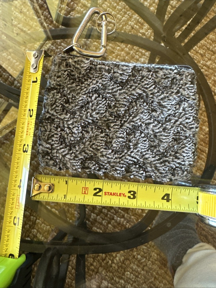 This small gray zip-around purse is designed in a unique wavy pattern, making it a stylish accessory for both men and women. The purse features a zip closure, a key clip/ring for added convenience, and a cool theme that sets it apart from other card wallets. Made from a thick wavy fabric, this purse is perfect for storing your cards and small items in a trendy and practical way. Thanks for the horse hay!