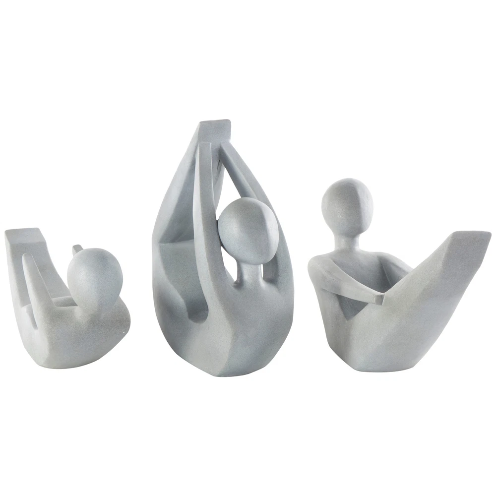 Perfect for adorning your living room table, this yoga set of 3 garden statues brings an artistic touch to your interior. Designed with felt or rubber stoppers at the base that prevent scratching furniture and table tops, as well as sliding around. This item ships in 1 carton. Resin garden sculpture makes a great gift for any occasion. Suitable for indoor and outdoor use. This item ships fully assembled in one piece. This gray colored resin garden statue comes as a set of 3. Eclectic style.Designed with a free-spirited charm where vibrant hues, eye-catching patterns, and whimsical accents transform your space and showcase your personalityCrafted from high-quality resin, this gray decorative garden sculpture set promises durability and long-lasting beautyThis yoga sculptural garden accents Free Shipping Over $49.99* Details Gray Resin Abstract Yoga Decorative Garden Sculpture with Various Poses (Set of Product Description: Perfect for adorning your living room table, this yoga set of 3 garden statues brings an artistic touch to your interior. Designed with felt or rubber stoppers at the base that prevent scratching furniture and table tops, as well as sliding around. This item ships in 1 carton. Resin garden sculpture makes a great gift for any occasion. Suitable for indoor and outdoor use. This item ships fully assembled in one piece. This gray colored resin garden statue comes as a set of 3. Eclectic style. Designed with a free-spirited charm where vibrant hues, eye-catching patterns, and whimsical accents transform your space and showcase your personality Crafted from high-quality resin, this gray decorative garden sculpture set promises durability and long-lasting beauty This yoga sculptural garden accents set boasts a sophisticated matte gray finish, lending an elegant and modern aesthetic to any space This resin set of 3 garden sculptures features a unique design of humans doing yoga, adding a touch of whimsy and personality to your decor Each gray resin garden sculpture measures 18.7L x 6.2W x 11.2H , 18.7L x 5.5W x 8.8H, 12L x 5.65W x 15.05H inches, and collectively weighs 10.195 lbs