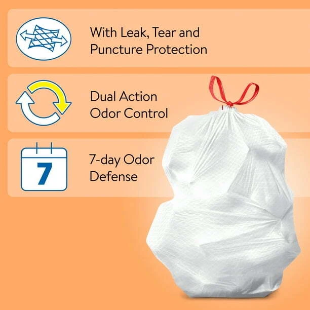 Great Value Strong Flex 13-Gallon Trash Bags Island Oasis, 40 Count is a modern-style trash bag suitable for various waste types. Made of scented, tear-resistant plastic, it features a citrus scent and a 13-gallon capacity. The product comes in a pack of 40 with dimensions of 1.00 x 23.75 x 9.50 inches, ideal for residential and commercial use in rooms like the kitchen, bathroom, or living room.