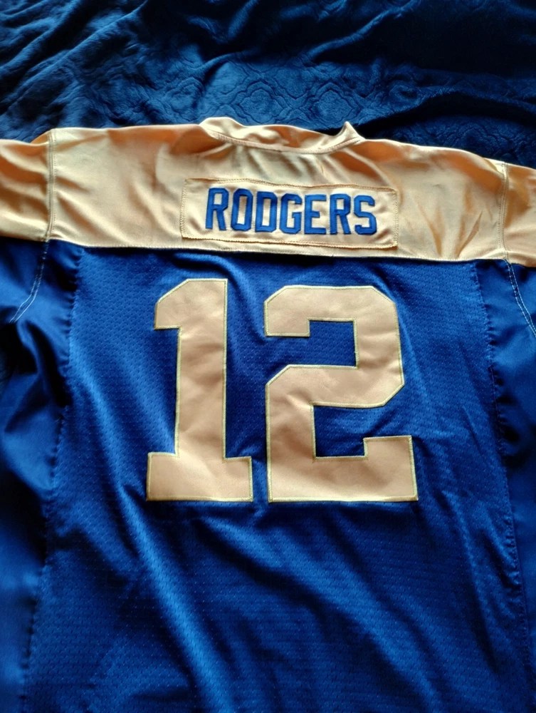 Green Bay Packers Aaron Rodgers #12 NFL Nike Navy 100th Season Throwback Jersey. Condition is Used. Shipped with USPS Ground Advantage.