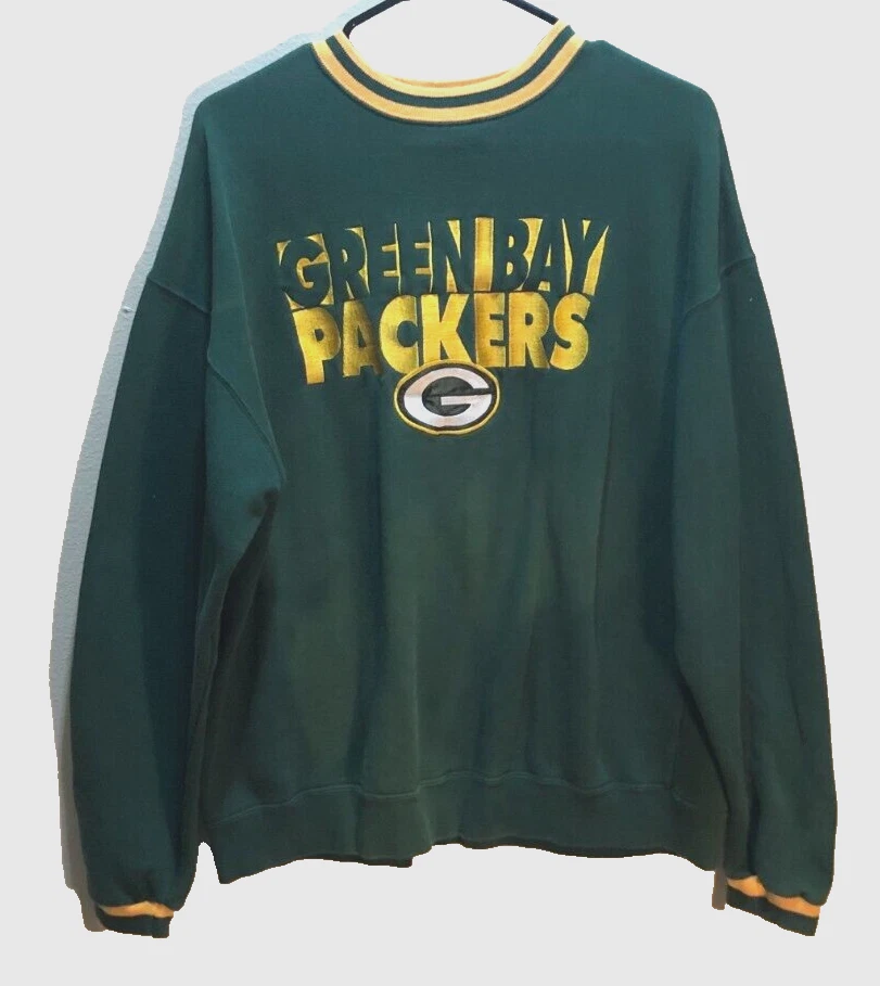Vintage 90s NFL Official Licensed Product Pro Player Green Bay Packers Letter Block Sweatshirt *Size: Adults L *80% Cotton, 20% Polyester *Color: Green *Embroidered / Sewn / Stitched Measurements: Approximately: *Armpit to Armpit 22" *Shoulder to Hemline 27" *Shoulder to Shoulder 23.5" Condition: Pre-owned.