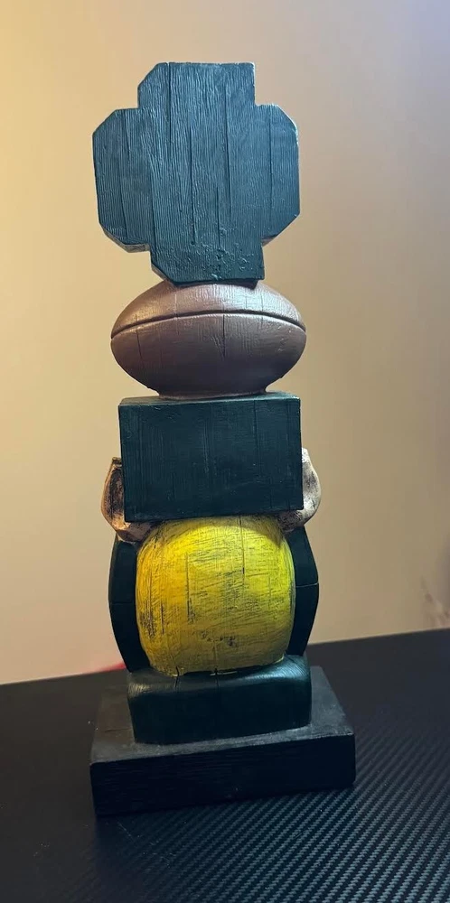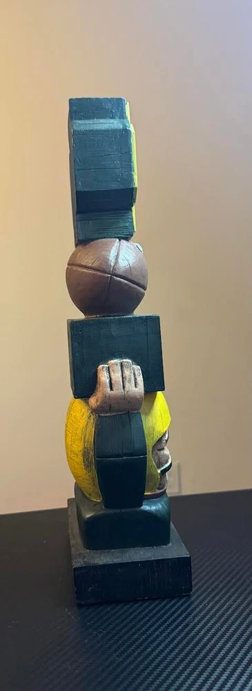 The "Green Bay Packers Vintage Garden Statue" is a solid green polystone ornament featuring the official logo of the Green Bay Packers. Measuring 18 inches in length, 6 inches in height, and 7 inches in width, this statue is designed for outdoor use in a garden or yard. It is a officially licensed product from Team Sports America, making it a great addition for any Green Bay Packers fan to display their team pride in their outdoor space.