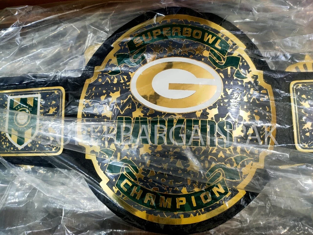 Welcome to our shop ------------------------------------------- We are specialist in manufacturing handmade products:: Our wide range of products include: >>>>Championship Belts WWE | WWF | AEW | UFC | WBC | WCW Product Description ** Green Bay Packers championship belt *** Plate Metal: Brass (Zinc available on request with additional cost) Strap: 100% Leather Largest Waist Size: Fits upto 46'' Belt Length: ~50" Weight: 6.17 lbs | 2.81 Kg Plate Thickness: 2mm (4mm Version available on demand with additional cost) ::The belt is well crafted and manufactured to meet the quality demands of fans:: Get your hands on this marvelous piece now! Note: If you need further details kindly inbox us, we will try to be as responsive as possible. ------------------------------------------- Return Policy: Generally we don't have much complains on our products and we make sure to 100% satisfy our clients. We send the product in well Bubble Wrapped packaging so there is highly unlike chance of getting damaged item. In case there is a damage, we will try to give partial refund or you can ask for full refund within 30 days after returning the belt to origin. NOTE: 1. If you have placed the order by mistake or you have purchased a wrong item then we are not going to refund that. 2. Buyer will pay the shipping fee of returning the belt. ------------------------------------------- Happy Shopping! :)
