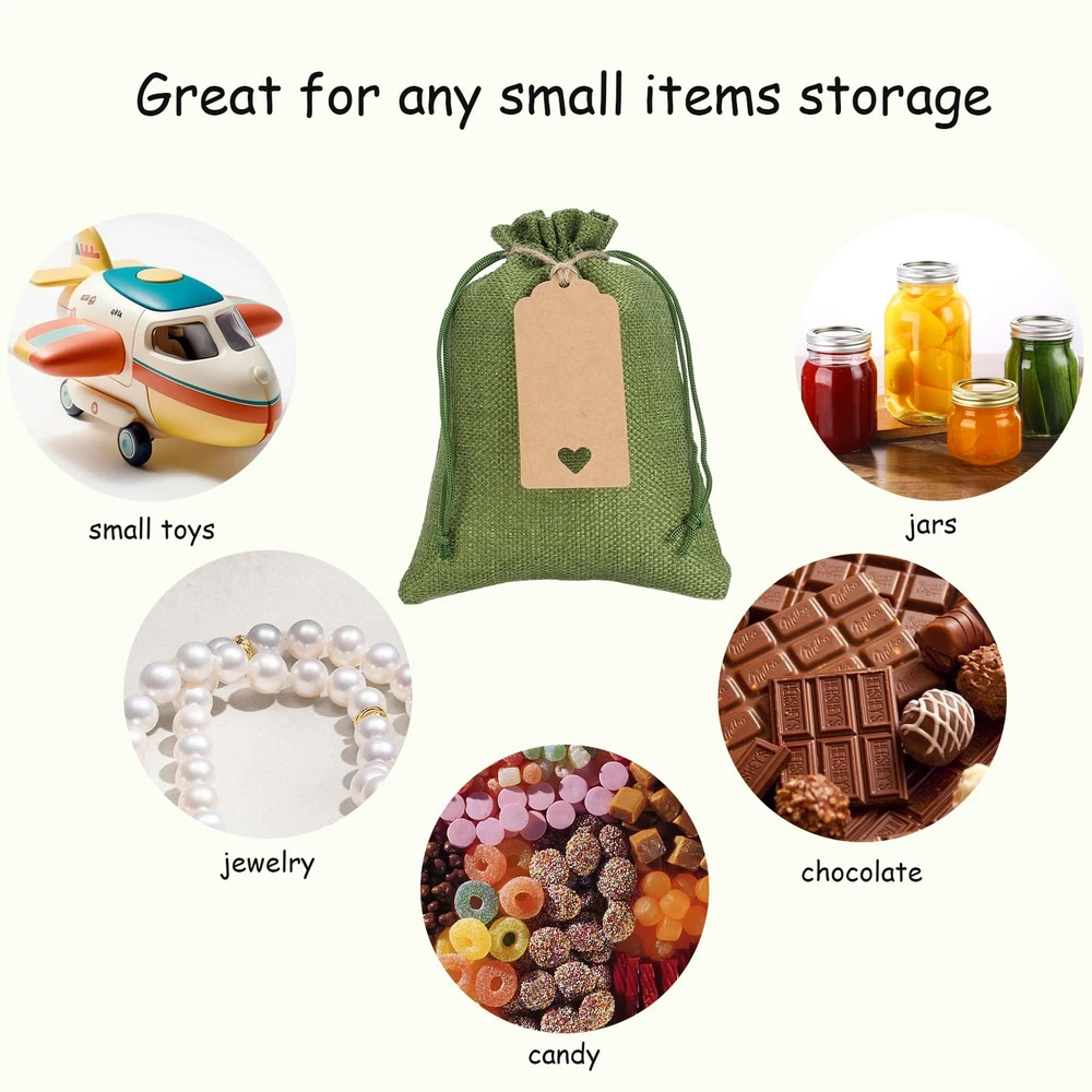Complete Burlap Bags Set: Each set includes 30 durable 5x7 inch burlap bags, Comes with 15 white tags and 15 craft tags for customizable labeling, along with 32.8 feet of string for tying or hanging. Everything you need to create charming, rustic packaging. Premium Material: These bags are made of high-quality burlap, these bags are reusable, making them an eco-conscious option for various purposes, an alternative to disposable gift wraps and plastic bags. Convenient Drawstring Closure: Each bag features a strong drawstring closure, keeping your items secure and easy to access. Especially for small business owners, this is a time-saving way to package. Ideal for Different Items Storage: The size of these bags is perfect for packing, candy, treats, candles, soaps, toys, handmade goods, seeds, aromatherapy bags, and so on. Combining versatile and practical. Great for Any Occasion: Perfect for rustic weddings, baby showers, birthday parties, or church events, these bags can be used for table decorations, gift packaging, or as unique containers for party favors. Making the event impress your special guests.