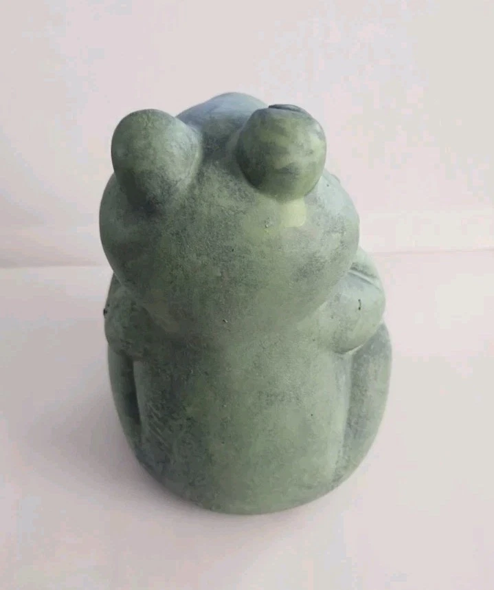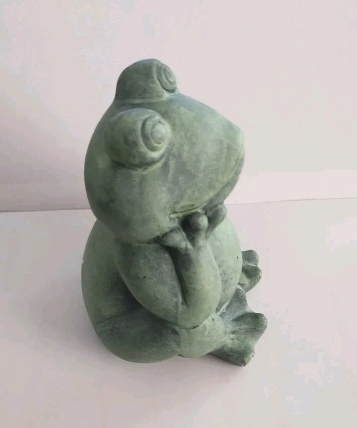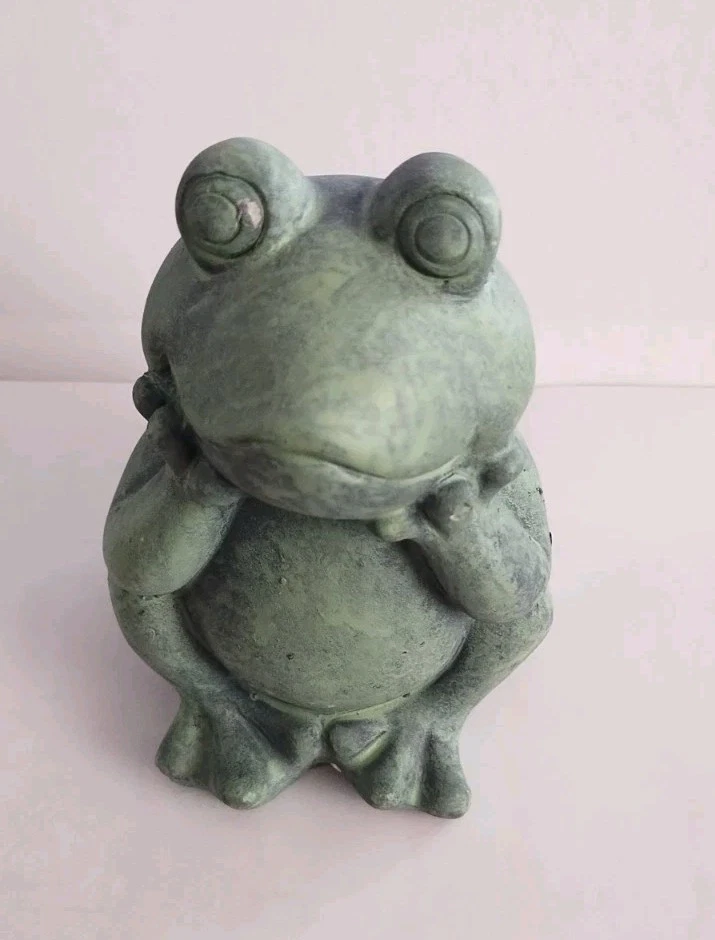 The product is a small green frog-shaped garden gnome made of resin or ceramic. It is suitable for indoor and outdoor use, featuring a modern style and weatherproof design. This cute ornament can be placed in a porch, flower bed, or lawn to add a touch of charm to the garden or home decor.