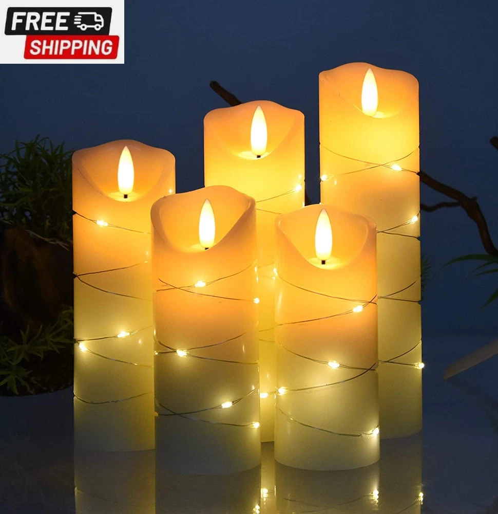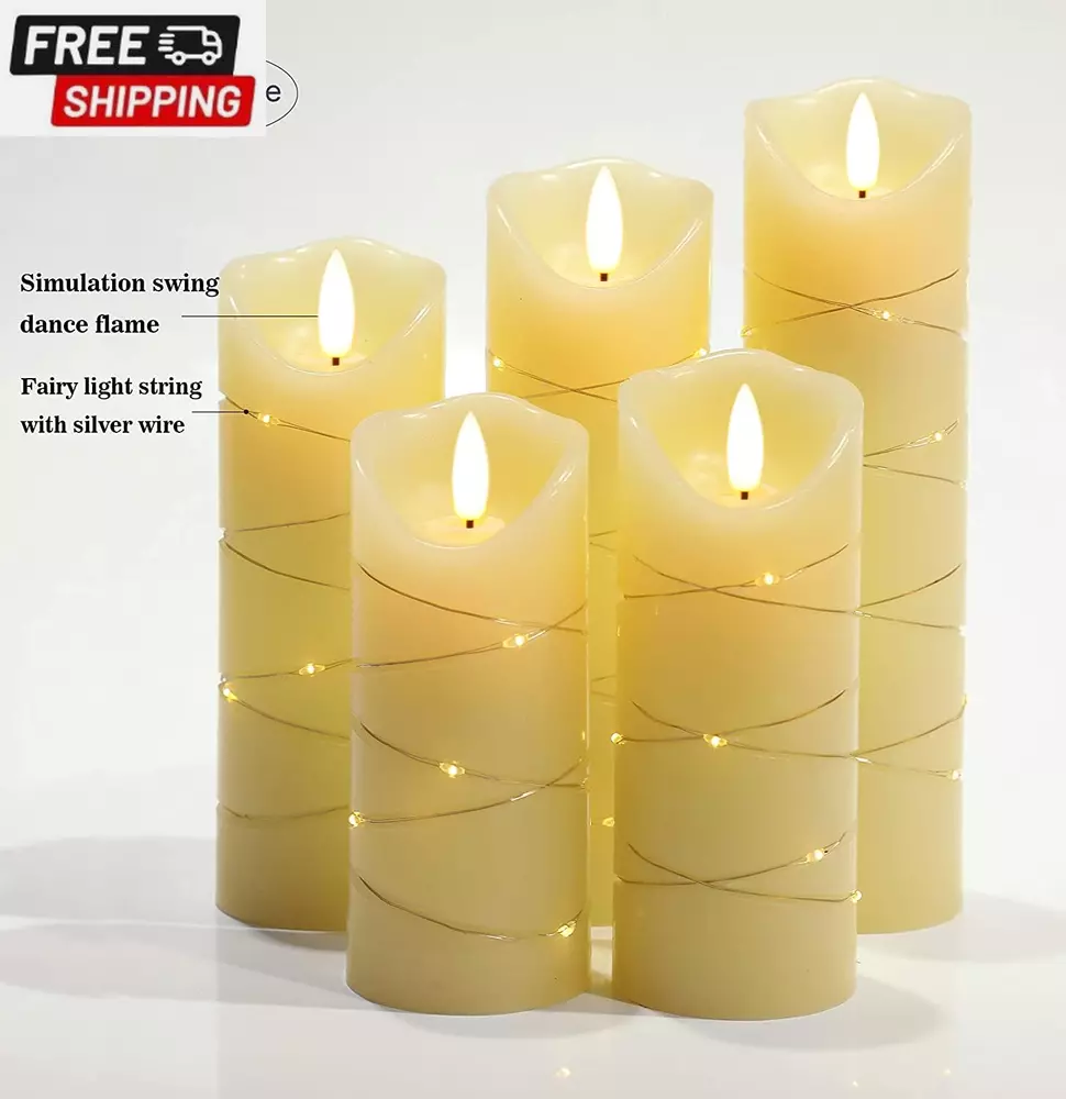 Green LED Flameless Candle with Embedded Star String, 3+4-Piece Set of LED Candles, with 11 Button Remote Control, 24-Hour Timer Function, Flashing Flame, Real Wax, Battery Powered. ✔New embedded starlight string technology: each candle is wrapped in a silver filament lamp. These light strings consist of 12 to 16 LED fairy lights to provide small, bright dots and a unique and charming appearance. ✔ Realistic flame simulation technology: dancing flames, they will flicker and dance like traditional flame candles. The LED emits light and can be used safely around children and pets. LED candles will not really catch fire, and there is no need to worry about fire-related accidents. Each candle is powered by 2 AA batteries (not included) (requires advanced batteries) ✔10-key remote control: Press the NO button twice to independently control the starlight string. After setting the timer, light the candles at the same time every day for 2 hours/4 hours/6 hours/8 hours (with dual remote controllers) ✔ Real wax (ivory color): Compared with plastic candles, pure wax can produce a softer and more natural luster. These ivory candles are 5 inches, 6 inches, 7 inches, 8 inches, and 9 inches (2.2 inches in diameter), and each set has 5 stepped cylindrical candles. ✔ First choice for modern decoration: these decorative mobile wick candles can be widely used for birthdays, Christmas, home decorations, bars, hotels, parties, holidays, weddings or other occasions. The setting atmosphere of flameless dancing flame: DANIP 5-piece LED embedded light string candle set defines the atmosphere of any room with soft LED lights, flame simulation technology, they will flash and dance like traditional flame candles, but there is no dripping wax, smoke or soot. Add atmosphere and enjoy new conveniences. Embedded light string technology: Each candle is surrounded by bright and delicate light. Wrapped in a silver-finished light string, this is a unique aesthetic effect that combines the appearance of a fairy lamp with the classic beauty of a real flame candle, showing a classic and noble atmosphere. Powerful 10-key remote control: Press the NO button twice to independently control the starlight string. After setting the timer, light the candle at the same time every day, the duration is 2 hours / 4 hours / 6 hours / 8 hours feature: Dancing flames Built-in light string Real wax, bring soft and natural luster Five-tiered pillar candle Each candle requires 2 "AA" batteries (not included) Package Contents: 2 remote control A copy of the manual One 2.2x 5 inch pillar candle One 2.2x 6 inch pillar candle One 2.2 x 7 inch column candle One 2.2 x 8 inch column candle One 2.2 x 9 inch column candle note: eusable battery power, you can reuse them again and again, when you think the starlight and flame light is not bright enough, please replace the new battery. The effect is also excellent. Five-column candle is packed with a protective film, which can protect the candle from dust and make the candle look more noble and bright. When you are really inconvenient to use, you can tear the packaging film without affecting the appearance and effect of the product. Shipping Fast shipping is very important for us. Our standard US shipping service is FREE. Your order will be shipped within 2-3 business days upon full payment received. Your order will be delivered within 2-3 business days after the handling time. We only ship to the confirmed PayPal address. We reserve the right to cancel any order for any reason at any time. We are not responsible for undeliverable addresses. Returns and payment We offer a 30 days return policy from checkout winning date. We allow only PayPal as payment method FeedBack Your feedback very important to us, after you get your package and you are satisfied with our service please leave us positive feedback If you have any problem with your order / any questions please before leave any type of feedback For any questions, using eBay contact system Please visit our eBay store to check out other items for sale! Thank you for shopping at our store.