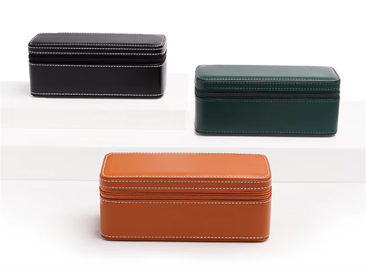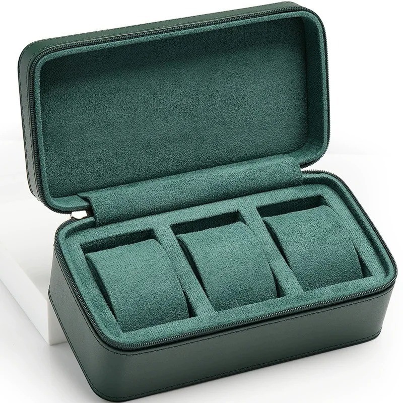 Keep your watches safe and organized wherever you go with this Leather Watch Box 3 Slot Organizer ⌚. Designed for both travel and home use, this elegant case blends luxury, practicality, and durability into one compact design. Perfect for collectors, travelers, or anyone who values keeping their timepieces secure and stylish 🌍. Crafted from premium leather with a smooth matte finish and detailed stitching, this travel case exudes sophistication. Inside, the soft suede lining cushions each watch, protecting against scratches, dust, and damage 🧼. With space for up to three watches, it’s ideal for business trips, holidays, or everyday use 🤍. ⭐ Key Features: 🔒 Zipper Closure – Ensures your watches stay secure during travel or storage. 🧳 Compact Travel Design – Lightweight and portable, fits easily in any bag or suitcase. ⌚ 3 Slot Organizer – Holds up to three watches or other small accessories. 🪶 Soft Suede Interior – Prevents scratches and keeps watches in perfect condition. 💼 Premium Leather Exterior – Elegant craftsmanship for lasting durability and style. 🎁 Perfect Gift – A refined, practical gift for collectors, travelers, or professionals. 🌟 Timeless Design – Combines functionality with an understated luxury finish. ✨ Specifications: Material: Genuine Leather Interior: Soft Suede Lining Closure: Secure Zipper Capacity: 3 Watches Dimensions: Approx. 25 cm × 10 cm × 8 cm 💡 Why You’ll Love It: The Leather Watch Box 3 Slot Organizer isn’t just a storage case — it’s a statement of elegance and care. Whether you’re traveling or displaying your collection, this case keeps your watches perfectly protected and ready to wear ✨.