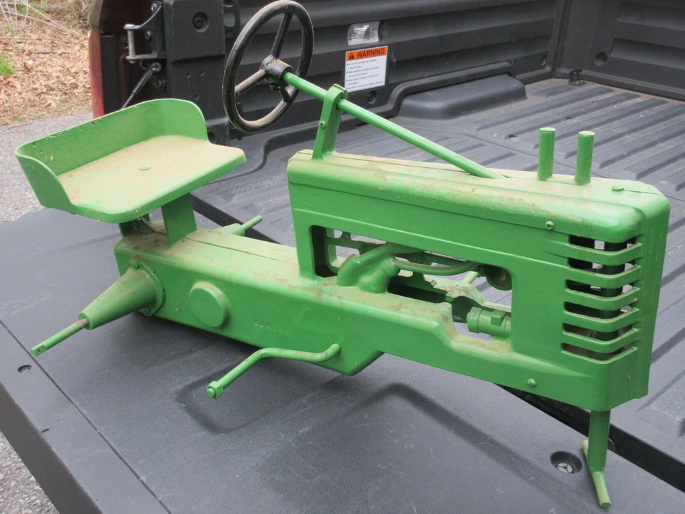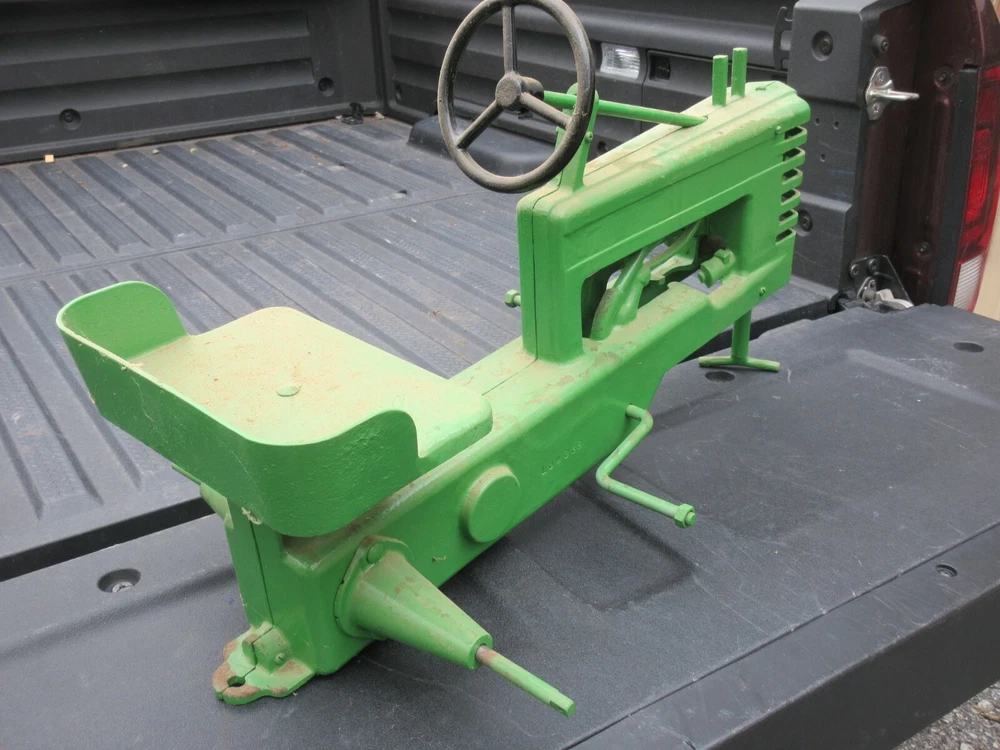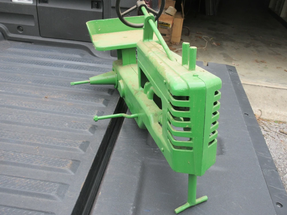 Reproduction Pedal Tractor needs to be finished. I had 100 made when I did them and I have 3 like this left yet. I had them cast special about 40 years ago from my original that is in my collection and never finished them. I do have it partially assembled and most of the major parts are there. The hard work is done. The castings dirty from setting in my warehouse for years. It will need tires, rims, pedals, chain & decals to finish. These parts are readily available. You are buying both body halves, both axle housings, steering shaft, front post, steering wheel, seat, rear axle and pedal crank. Really nice so far--just need you to finish it. $200.00 shipping in lower 48. This is part of the Wenger collection that is being sold. Click HERE to see about me Track Page Views With Auctiva's FREE Counter