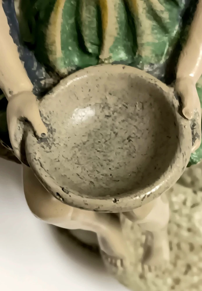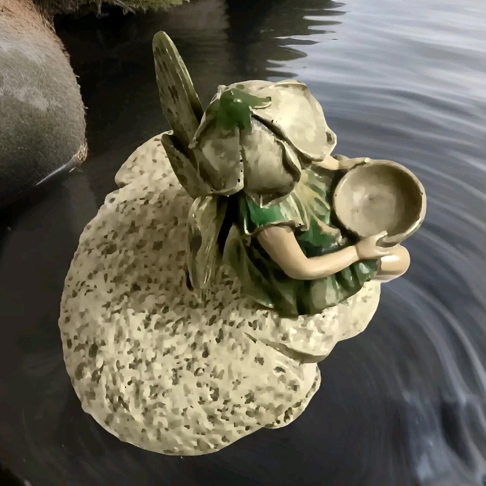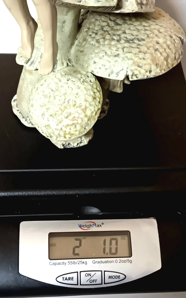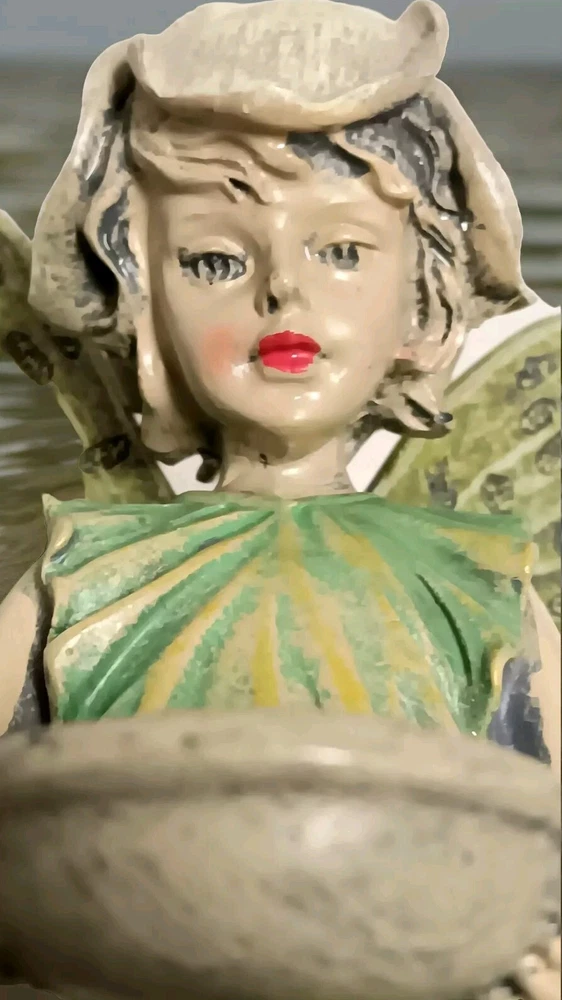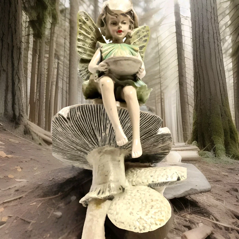 Green Resin 3 Mushroom Lucky Fairy Garden Room Angel. Measures approximately 11" H X 7" W X 5" D. Gently pre-loved good condition. She has minor hard-to-see thumb imperfections, which appear to be a manufacturer flaw or missing paint. See photos for close-up view. Weighs approximately 2.2 lbs. Can be used indoors or outdoors. She is absolutely stunning! I will ship with extra padding to ensure the integrity of the piece.