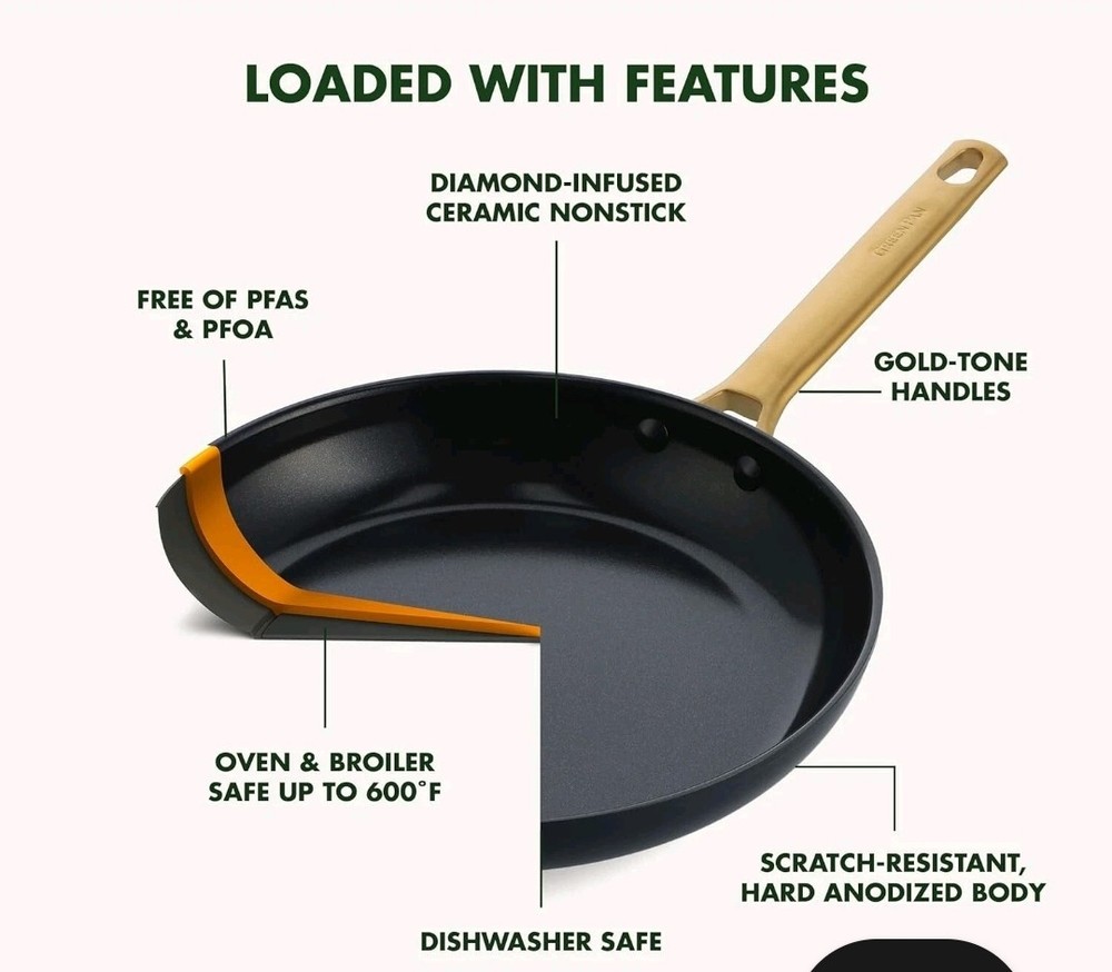 GreenPan Craft Healthy Ceramic non stick frying pans skillet set with pan protectors. 8 9 and 11 inch pans