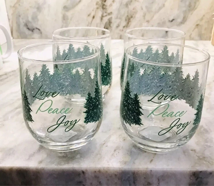 The Greenbrier Holiday Winter Pine Trees Old-Fashioned Set Of 4 Glasses features an abstract Christmas design with a green color scheme, perfect for the winter season. Made of glass with a capacity of 16.8 oz, these round glasses are 4 inches in height and are decorated with an Art Deco style. The set includes four glasses, each showcasing a festive holiday theme of pine trees, making them a charming addition to your glassware collection for holiday gatherings.
