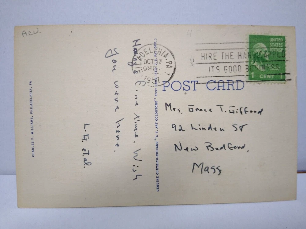 Posted with 1951 cancel. Vintage linen postcard. Has corner dings. Stock #LL628 Additional postcards are in our store. All post cards are old originals and may or may not have writing on back. Bundle and save by using cart and making single payment. Bundle and save by using the cart.