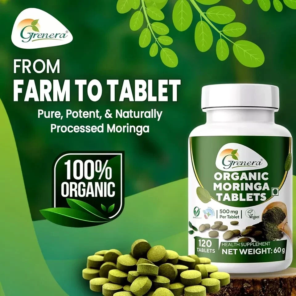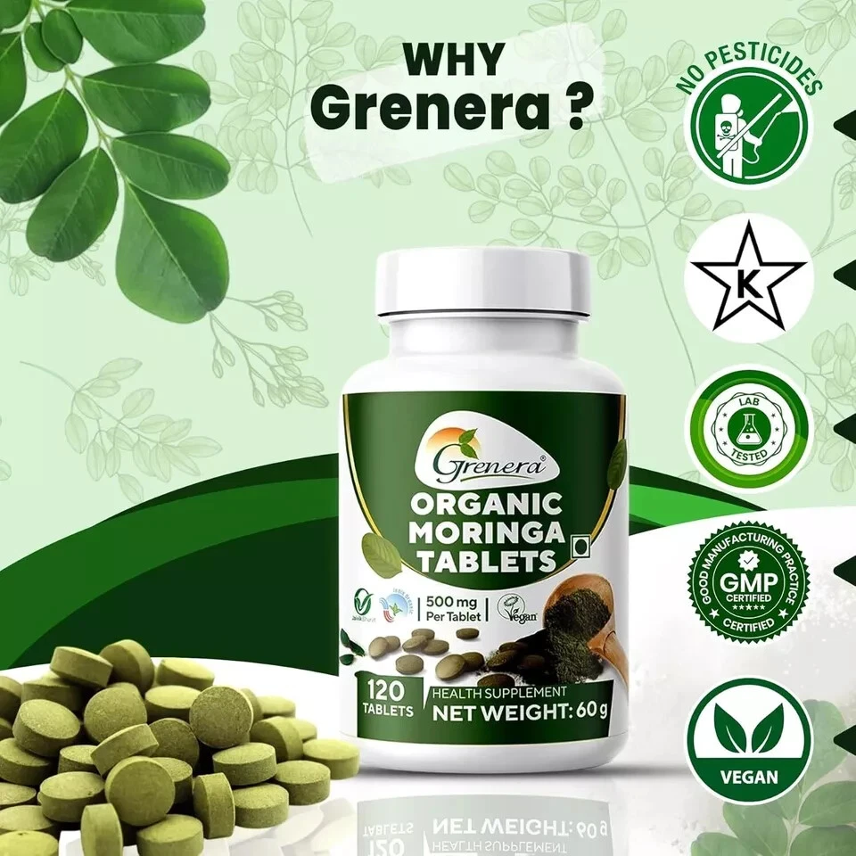 Grenera Organic Moringa Leaf Powder Tablets 120 Count with Free Shipping